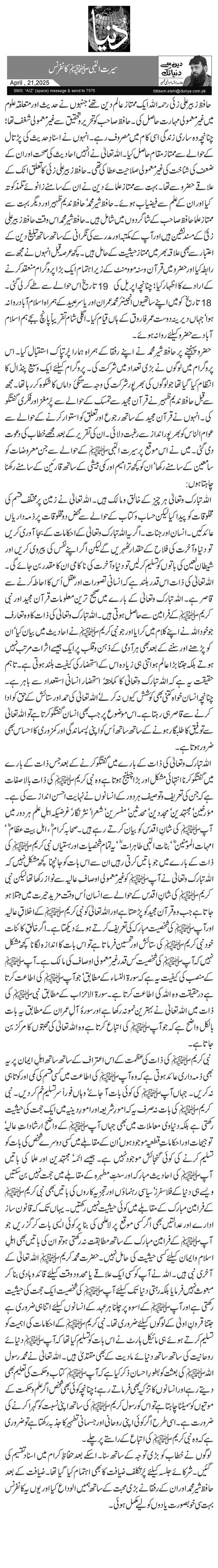 حضرو پہنچنے پر حافظ شیر محمد نے اپنے رفقا کے ہمراہ ہمارا پُرتپاک استقبال کیا۔ اس پروگرام میں لوگوں نے بڑی تعداد میں شرکت کی۔ پروگرام کیلئے ایک وسیع پنڈال کا انتظام کیا گیا تھا جو لوگوں کی بھرپور شرکت کی وجہ سے تنگیٔ داماں کا شکوہ کر رہا تھا۔ مجھ سے قبل حافظ ندیم ظہیر نے قرآن مجید سے تمسک کے حوالے سے پُرمغز اور فکری گفتگو کی۔ انہوں نے قرآن مجید کے ساتھ رجوع اور تعلق کو استوار کرنے کے حوالے سے عوام الناس کو بھرپور انداز سے رغبت دلائی۔ ان کی تقریر کے بعد مجھے خطاب کی دعوت دی گئی۔ میں نے اس موقع پر سیرت النبیﷺ کے حوالے سے جن معروضات کو سامعین کے سامنے رکھا‘ ان کوکچھ ترامیم اور کمی بیشی کے ساتھ قارئین کے سامنے رکھنا چاہتا ہوں: