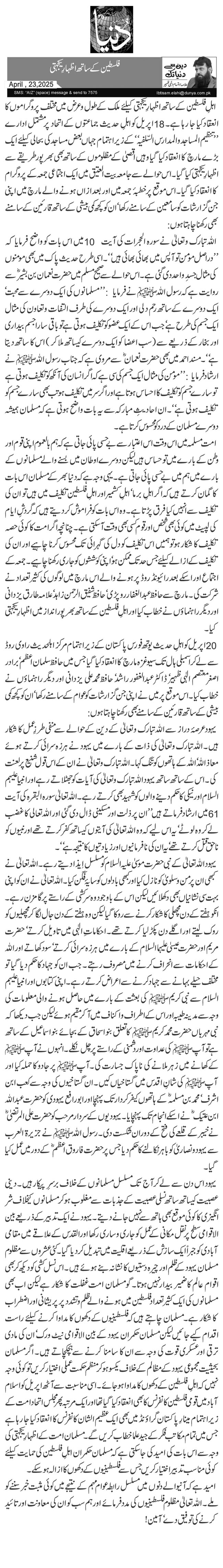 امید ہے کہ آنیوالے دنوں میں مسلسل رابطہ عوام مہم کے نتیجے میں کوئی مثبت خبر سننے کو ملے۔ اللہ تعالیٰ مظلوم فلسطینیوں کی مدد فرمائے اور ہم سب کو ان کی معاونت اور تائید کرنے کی توفیق دے‘ آمین!