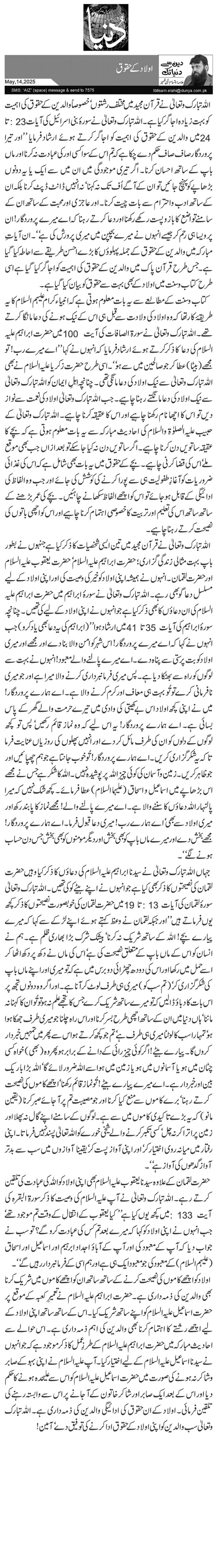 اللہ تبارک وتعالیٰ نے قرآن مجید میں مختلف رشتوں‘ خصوصاً والدین کے حقوق کی اہمیت کو بہت زیادہ اجاگر کیا ہے۔ اللہ تبارک وتعالیٰ نے سورۂ بنی اسرائیل کی آیات: 23تا 24 میں والدین کے حقوق کی اہمیت کو اجاگر کرتے ہوئے ارشاد فرمایا ''اور تیرا پروردگار صاف صاف حکم دے چکا ہے کہ تم اس کے سوا کسی اور کی عبادت نہ کرنا اور ماں باپ کے ساتھ احسان کرنا۔ اگر تیری موجودگی میں ان میں سے ایک یا یہ دونوں بڑھاپے کو پہنچ جائیں تو ان کے آگے اُف تک نہ کہنا‘ نہ انہیں ڈانٹ ڈپٹ کرنا بلکہ ان کے ساتھ ادب واحترام سے بات چیت کرنا۔ اور عاجزی اور محبت کے ساتھ ان کے سامنے تواضع کا بازو پست رکھے رکھنا اور دعا کرتے رہنا کہ اے میرے پروردگار! ان پر ویسا ہی رحم کر جیسے انہوں نے میرے بچپن میں میری پرورش کی ہے‘‘۔ ان آیاتِ مبارکہ میں والدین کے حقوق کے جملہ پہلوئوں کا بڑے احسن طریقے سے احاطہ کیا گیا ہے۔ جس طرح قرآن پاک میں والدین کے حقوق کی اہمیت کو اجاگر کیا گیا ہے اسی طرح کتاب وسنت میں اولاد کے بھی بہت سے حقوق کو بیان کیا گیا ہے۔
