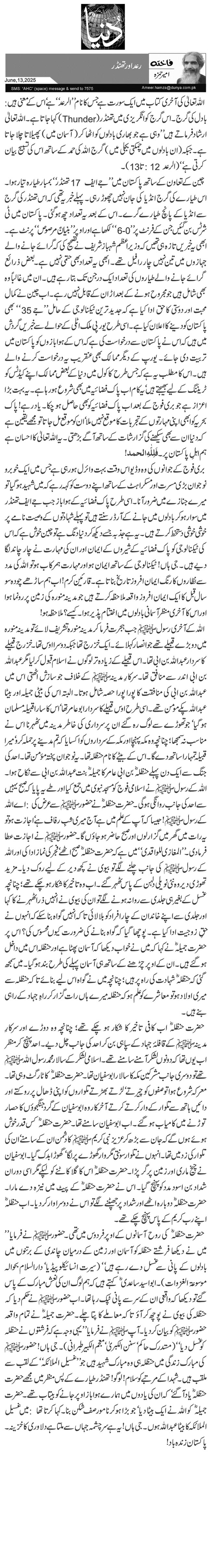 اللہ تعالیٰ کی آخری کتاب میں ایک سورت ہے جس کا نام ''الرعد‘‘ ہے‘ اس کے معنی ہیں: بادل کی گرج۔ اس گرج کو انگریزی میں تھنڈر (Thunder) کہا جاتا ہے۔ اللہ تعالیٰ ارشاد فرماتے ہیں ''وہی ہے جو بھاری بادلوں کو اٹھا کر (آسمان میں) پھیلاتا چلا جاتا ہے۔ جبکہ (ان بادلوں میں چمکتی بجلی میں) گرج اللہ کی حمد کے ساتھ اس کی تسبیح بیان کرتی ہے‘‘ (الرعد: 12 تا 13)۔