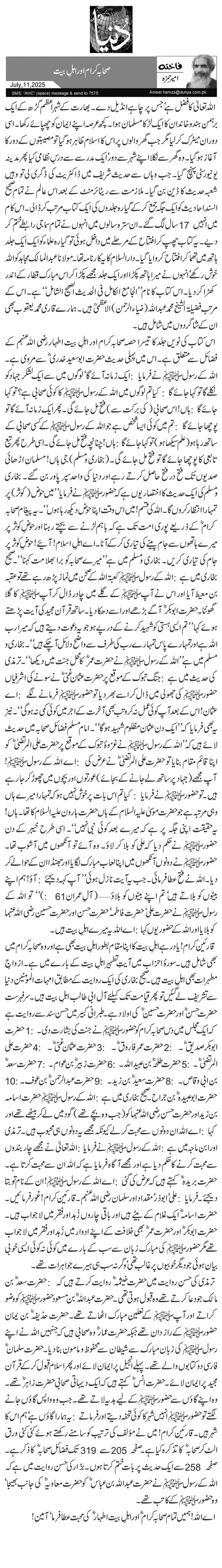 اے اللہ! ہمیں تمام صحابہ کرامؓ اور اہلِ بیت اطہارؓ کی محبت عطا فرما‘ آمین!