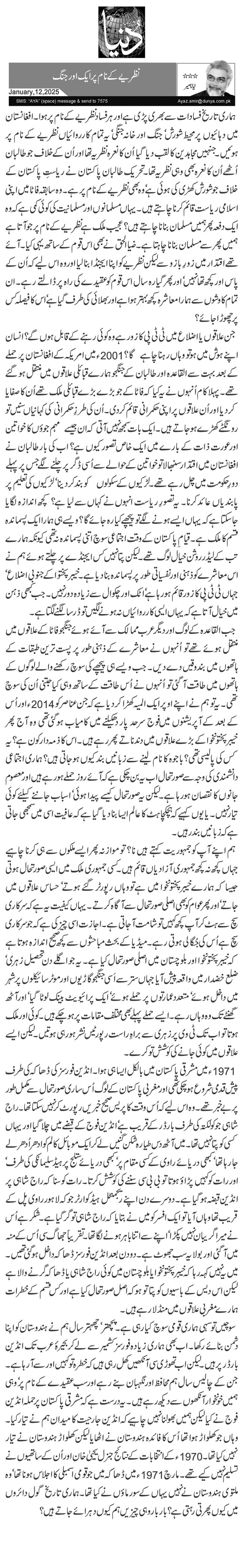 ہماری تاریخ فسادات سے بھری پڑی ہے اور ہر فساد نظریے کے نام پر ہوا۔ افغانستان میں دہائیوں پر محیط شورش‘ جنگ اور خانہ جنگی‘ یہ تمام کارروائیاں نظریے کے نام پر ہوئیں۔جنہیں مجاہدین کا لقب دیا گیا اُن کا نعرہ نظریہ تھا اور اُن کے خلاف جو طالبان اُٹھے اُن کا نعرہ بھی وہی نظریہ تھا۔ تحریک طالبان پاکستان نے ریاستِ پاکستان کے خلاف جو شورش کھڑی کی ہوئی ہے‘ وہ بھی نظریے کے نام پر ہے۔ وہ سابقہ فاٹا میں اپنی اسلامی ریاست قائم کرنا چاہتے ہیں۔ یہاں مسلمانوں اور مسلمانیت کی کوئی کمی ہے کہ وہ ایک دفعہ پھر ہمیں مسلمان بنانا چاہتے ہیں؟ عجیب ملک ہے نظریے کے نام پر جو آتا ہے ہمیں پھر سے مسلمان بنانا چاہتا ہے۔ ضیا الحق نے بھی اس قوم کے ساتھ یہی کیا۔ آئے تھے اقتدار میں زورِ بازو سے لیکن نظریے کو اپنا ایجنڈا بنا لیا اوروہ اس لیے کہ اُن کے پاس اور کچھ تھا نہیں‘ اورپھر گیارہ سال اس قوم کو عقیدے کی راہ پر ڈالتے رہے۔ ان تمام کاوشوں سے ہمارا معاشرہ کچھ بہتر ہوا ہے اور بھلائی کی طرف گیا ہے‘ اس کا فیصلہ کس پر چھوڑا جائے؟
