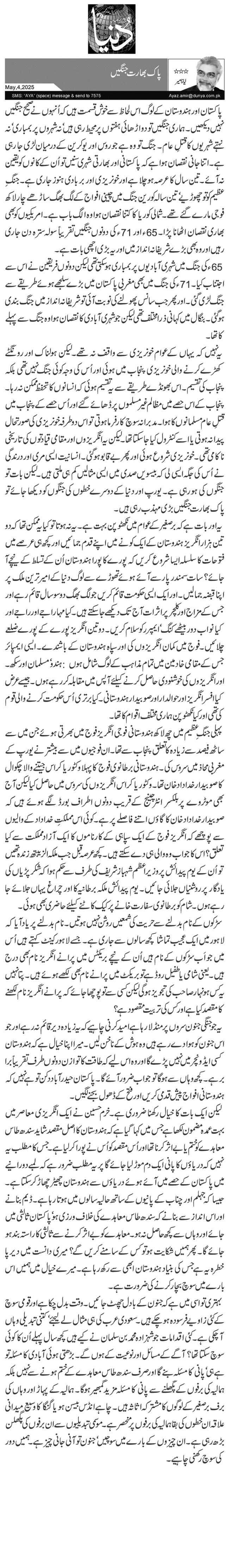 یہ جو جنگی جنون سروں پر منڈلا رہا ہے امید کرنی چاہیے کہ یہ زیادہ دیر قائم نہ رہے اور جو اس جنون کو ہوا دے رہے ہیں وہ ہوش کے ناخن لیں ۔ میرا اپنا خیال ہے کہ ہندوستان کسی ایڈونچر میں نہیں پڑے گا اور وہ اس لیے کہ طاقت کا توازن دونوں طرف تقریباً برا بر ہے۔ کچھ وہاں سے ہوگا تو جواب ضرور آئے گا۔ پاکستان حیدرآباد دکن تو ہے نہیں کہ ہندوستانی افواج پیش قدمی کریں اور فتح کے ڈھول بجنے لگیں۔