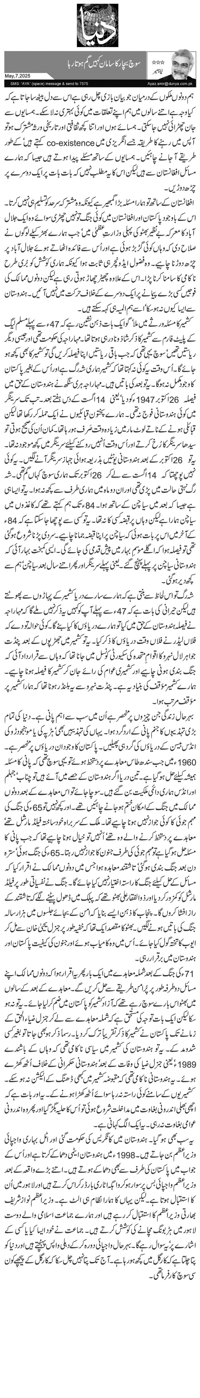 71ء کی جنگ کے بعد شملہ معاہدے میں ایک بار پھر یہ اقرار ہوا کہ دونوں ممالک اپنے مسائل دو طرفہ طور پر پُرامن طریقے سے حل کریں گے۔ معاہدے کے بعد کے سالوں میں بھٹو اس بارے سوچ رہے تھے کہ آزاد کشمیر کو پاکستان میں ضم کر لیا جائے۔ یہ تو نہ ہو سکا لیکن ایک بات توجہ کی مستحق ہے کہ شملہ معاہدے سے لے کر جنرل ضیاء الحق کے زمانے تک پاکستان نے کشمیر کا ذکر تقریباً ترک کر دیا۔ رسماً ذکر ہو بھی جاتا تو بغیر کسی شدومد کے۔ یہ تو ہندوستان کی کشمیر میں سیاسی ناکامی تھی کہ وہاں کے باشندے 1989ء‘ یعنی جنرل ضیا کی وفات کے بعد‘ ہندوستانی حکمرانی کے خلاف اُٹھ کھڑے ہوئے۔ یہ ہندوستانی ناکامی تھی کہ مقبوضہ کشمیر میں کبھی ڈھنگ کے الیکشن نہ ہو سکے۔ کشمیر یوں کے سامنے کوئی راستہ نہ رہا سوائے اُٹھ کھڑا ہونے کے۔ یہ اور بات ہے کہ اچھی بھلی اندرونی بغاوت میں مداخلت شروع ہوئی تو اُس کا حلیہ بگڑ گیا اور پھر وہ اندرونی عوامی بغاوت نہ رہی۔ یہ ایک الگ کہانی ہے۔