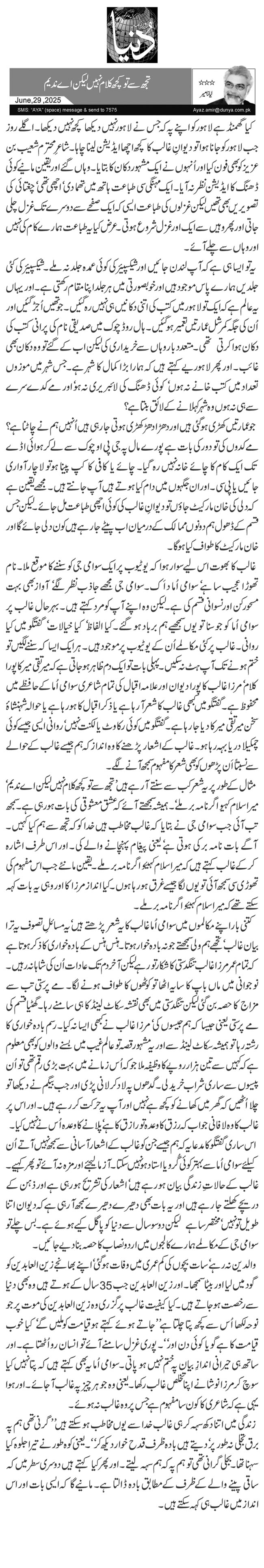 کیا گھمنڈ ہے لاہور کو اپنے پہ کہ جس نے لاہور نہیں دیکھا کچھ نہیں دیکھا۔ اگلے روز جب لاہور کو جانا ہوا تو دیوانِ غالب کا کچھ اچھا ایڈیشن لینا چاہا۔ شاعرِ محترم شعیب بن عزیز کو بھی فون کیا اور اُنہوں نے ایک مشہور دکان کا بتایا۔ وہاں گئے اور یقین مانیے کوئی ڈھنگ کا ایڈیشن نظر نہ آیا۔ ایک مہنگی سی طباعت ہاتھ میں تھما دی‘ اچھی تھی‘ چغتائی کی تصویریں بھی تھیں لیکن غزلوں کی طباعت ایسی کہ ایک صفحے سے دوسرے تک غزل چلی جاتی اور پھر وہیں سے ایک اور غزل شروع ہوتی۔ عرض کیا یہ طباعت ہمارے کام کی نہیں اور وہاں سے چلے آئے۔