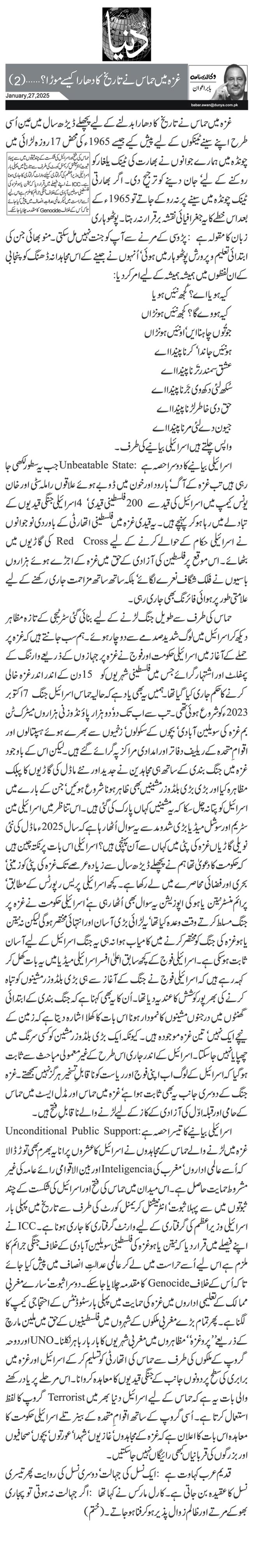 غزہ میں حماس نے تاریخ کا دھارا بدلنے کے لیے پچھلے ڈیڑھ سال میں عین اُسی طرح اپنے سینے ٹینکوں کے لیے پیش کیے جیسے 1965ء کی محض 17 روزہ لڑائی میں چونڈہ میں ہمارے جوانوں نے بھارت کی ٹینک یلغار کو روکنے کے لیے‘ جان دینے کو ترجیح دی۔ اگر بھارتی ٹینک چونڈہ میں سینے پر نہ روکے جاتے تو 1965ء کے بعد اس خطے کا یہ جغرافیائی نقشہ برقرار نہ رہتا۔ پوٹھوہاری زبان کا مقولہ ہے: پڑوسی کے مرنے سے آپ کو جنت نہیں مل سکتی۔ منو بھائی جن کی ابتدائی تعلیم وپرورش پوٹھوہار میں ہوئی‘ اُنہوں نے جینے کے اس مجاہدانہ ڈھنگ کو پنجابی کے ان لفظوں میں ہمیشہ ہمیشہ کے لیے امرکر دیا: