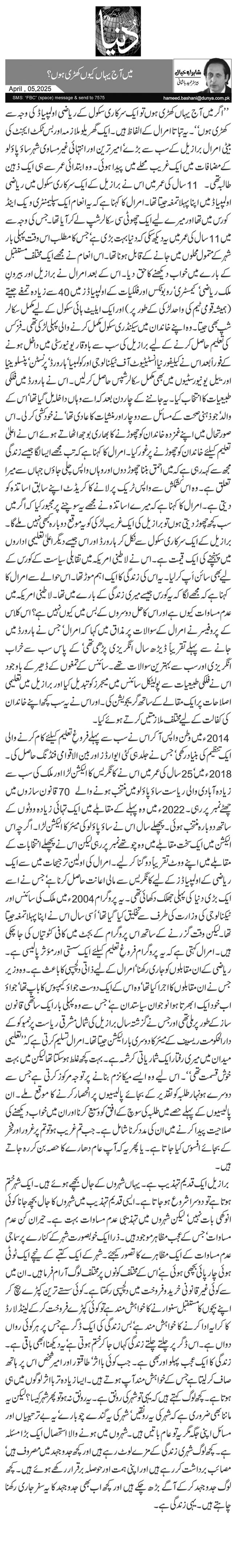 2014ء میں وطن واپس آکر اس نے سب سے پہلے فروغِ تعلیم کیلئے کام کرنے والی ایک تنظیم کی بنیاد رکھی‘ جس نے جلد ہی کئی ایوارڈز اور بین الاقوامی فنڈنگ حاصل کی۔ 2018ء میں‘ 25سال کی عمر میں اس نے کانگریس کا الیکشن لڑا اور ملک کی سب سے زیادہ آبادی والی ریاست ساؤ پاؤلو میں منتخب ہونے والے 70 قانون سازوں میں چھٹے نمبر پر رہی۔ 2022ء میں وہ پہلے کے مقابلے میں ایک تہائی زیادہ ووٹوں کے ساتھ دوبارہ منتخب ہوئی۔ پچھلے سال اس نے ساؤ پاؤلو کی میئر کا الیکشن لڑا۔ اگرچہ اس الیکشن میں ایک سخت مقابلے میں وہ چوتھے نمبر پر رہی لیکن اس نے پچھلے انتخابات کے مقابلے میں اپنے ووٹ تقریباً دو گنا کر لیے۔ امرال کی اولین ترجیحات میں سے ایک ریاضی کے اولمپیاڈز کے لیے کانگریس سے مالی اعانت حاصل کرنا ہے‘ جس نے اسے ایک بڑی دنیا کی پہلی جھلک دکھائی تھی۔ یہ پروگرام 2004ء میں ملک کی سائنس اور ٹیکنالوجی کی وزارت کی طرف سے تخلیق کیا گیا تھا‘ اُسی سال اس نے اپنا پہلا تمغہ جیتا تھا۔ لیکن وقت گزرنے کے ساتھ اس پروگرام کے بجٹ میں کافی کٹوتیاں کی جا چکی ہیں۔ امرال کہتی ہے کہ یہ پروگرام فروغِ تعلیم کیلئے ایک سستی اور مؤثر پالیسی ہے۔ ریاضی کے ان مقابلوں کو جاری رکھنا‘ امرال کے لیے ذاتی دلچسپی کا باعث ہے۔ وہ وزیر جس نے ان مقابلوں کا اجرا کیا تھا‘ وہ اس کے ایک دوست جواؤ کیمپوس کا باپ تھا‘ جواؤ اب خود ایک ابھرتا ہوا نوجوان سیاستدان ہے‘ جس سے وہ پہلی بار ایک ساتھی قانون ساز کے طور پر ملی تھی اور جس نے گزشتہ سال برازیل کی شمال مشرقی ریاست پرنمبوکو کے دارالحکومت ریسیف کے میئر کا دوسری بار الیکشن جیتا تھا۔ امرال تسلیم کرتی ہے کہ ''تعلیمی میدان میں میری رفتار ایک شماریاتی کرشمہ ہے۔ بہت کچھ غلط ہو سکتا تھا لیکن میں بہت خوش قسمت تھی‘‘۔ اس لیے وہ ایسے میکانزم بنانے پر توجہ مرکوز کرتی ہے جس سے دوسرے ہونہار طلبہ کو تقدیر کے بجائے پالیسیوں پر انحصار کرنے کا موقع ملے۔ ان پالیسیوں کے پہلے حصے میں طلبہ کی سوچ کے افق کو وسیع کرنا اور ان میں خواب دیکھنے کی صلاحیت پیدا کرنے میں ان کی مدد کرنا شامل ہے۔ جب تم غریب ہو تو تم پر غرور اور فخر کے بجائے افسوس کیا جا تا ہے۔ یا پھر یہ کہ آپ عام دھارے کا حصہ بن کر رہ جاتے ہیں۔