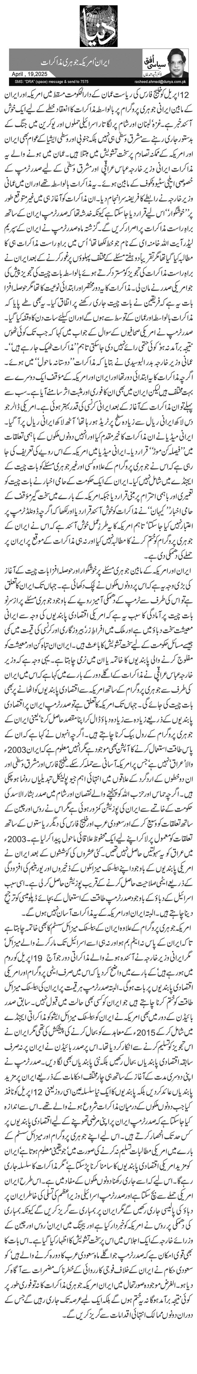امریکہ جوہری پروگرام کے علاوہ ایران کے بیلسٹک میزائل سسٹم کا بھی خاتمہ چاہتا ہے تاکہ ایران کے پاس نہ ایٹم بم ہو اور نہ ہی اسے اسرائیل تک مار کرنے والے میزائل‘ مگر ایرانی وزیر خارجہ نے آئندہ ہونے والے مذاکراتی دور جو آج 19 اپریل کو روم میں ہو رہے ہیں‘ کے بارے میں واضح کر دیا کہ اس میں صرف ایٹمی پروگرام اور امریکی اقتصادی پابندیوں پر بات ہو گی۔ البتہ صدر ٹرمپ ہر قیمت پر ایران کی بیلسٹک میزائل طاقت کو ختم کرنا چاہتے ہیں جو ایران کو کسی بھی حالت میں قبول نہیں۔ سابق صدر بائیڈن کے دور میں بھی امریکہ نے ایران کو بیلسٹک میزائل ایشو کو مذاکراتی ایجنڈے میں شامل کر کے 2015ء کے معاہدے کو بحال کرنے کی پیشکش کی تھی مگر ایران نے اس تجویز کو تسلیم کرنے سے انکار کر دیا تھا۔ اس پر صدر بائیڈن نے ایران پر نہ صرف سابقہ اقتصادی پابندیاں بحال رکھیں بلکہ نئی پابندیاں بھی لگا دیں۔ صدر ٹرمپ نے اپنی دوسری مدت کے آغاز کے ساتھ ہی چار مختلف احکامات کے ذریعے ایران پر مزید پابندیاں عائد کر دیں بلکہ پابندیوں کا ایک نیا سلسلہ عین اسی روز یعنی 12 اپریل کو نافذ کیا جب دونوں ملکوں کے درمیان مذاکرات شروع ہونے والے تھے۔ اس سے اندازہ کیا جا سکتا ہے کہ صدر ٹرمپ ایران پر اپنی مرضی تھوپنے کے لیے اقتصادی پابندیوں پر کس حد تک انحصار کرتے ہیں۔ اس لیے اپنے جوہری پروگرام اور میزائل سسٹم کے بارے میں امریکی مطالبات تسلیم نہ کرنے کی صورت میں‘ جو یقینی معلوم ہوتا ہے‘ ایران کو مزید امریکی اقتصادی پابندیوں کا سامنا کرنا پڑ سکتا ہے‘ مگر مذاکرات کا سلسلہ جاری رہے گا۔ اس لیے کہ اسے جاری رکھنا دونوں ملکوں کے مفاد میں ہے۔ اس طرح ایران امریکی حملے سے بچ سکتا ہے اور صدر ٹرمپ اسرائیلی وزیراعظم کی تسلی کی خاطر ایران پر دباؤ کی پالیسی جاری رکھیں گے مگر ایران پر بمباری سے گریز کریں گے کیونکہ بمباری کی دھمکی پر روس نے امریکہ کو خبردار کیا ہے اور بیجنگ میں ایران‘ روس اور چین کے وزرائے خارجہ کے ایک اجلاس میں اس پر سخت تشویش کا اظہار کیا گیا ہے۔ اس بات کا بھی قوی امکان ہے کہ صدر ٹرمپ جو اگلے ماہ سعودی عرب کا دورہ کرنے والے ہیں‘ کو سعودی حکام نے ایران کے خلاف فوجی کارروائی کے خطرناک مضمرات سے آگاہ کر دیا ہو۔ الغرض موجودہ صورتحال میں ایران امریکہ جوہری مذاکرات کا نہ تو فوری طور پر کوئی نتیجہ برآمد ہوگا نہ یہ ختم ہوں گے بلکہ ایک لمبے عرصہ تک جاری رہیں گے جس کے دوران دونوں ممالک انتہائی اقدامات سے گریز کریں گے۔