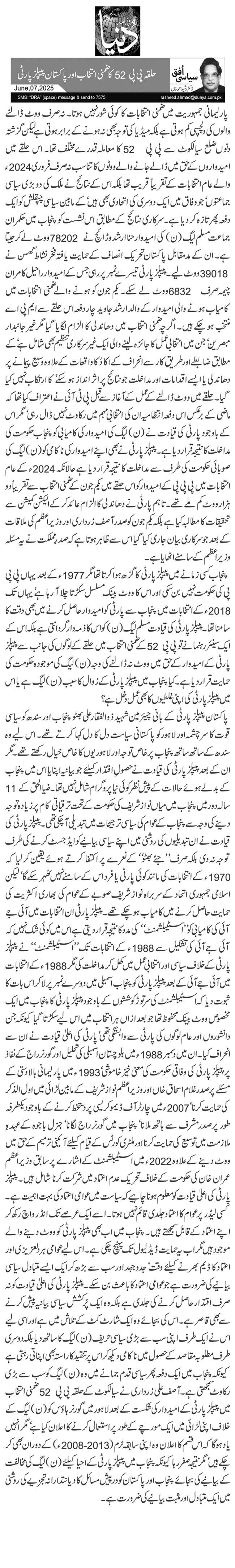 پارلیمانی جمہوریت میں ضمنی انتخابات کا کوئی شور نہیں ہوتا۔ نہ صرف ووٹ ڈالنے والوں کی دلچسپی کم ہوتی ہے بلکہ میڈیا کی توجہ بھی نہ ہونے کے برابر ہوتی ہے لیکن گزشتہ دنوں ضلع سیالکوٹ سے پی پی 52 کا معاملہ قدرے مختلف تھا۔ اس حلقے میں امیدواروں کے حق میں ڈالے جانے والے ووٹوں کا تناسب نہ صرف فروری 2024ء والے عام انتخابات کے تقریباً قریب تھا بلکہ اس کے نتائج نے ملک کی دو بڑی سیاسی جماعتوں‘ جو وفاق میں ایک دوسری کی اتحادی بھی ہیں‘ کے مابین سیاسی چپقلش کو ایک دفعہ پھر تازہ کر دیا ہے۔ سرکاری نتائج کے مطابق اس نشست کو پنجاب میں حکمران جماعت مسلم لیگ (ن) کی امیدوار حنا ارشد وڑائچ نے 78202 ووٹ لے کر جیتا ہے۔ ان کے مدمقابل پاکستان تحریک انصاف کے حمایت یافتہ فخر نشاط گھمن نے 39018 ووٹ لیے۔ پیپلز پارٹی تیسرے نمبر پر رہی جس کے امیدوار راحیل کامران چیمہ صرف 6832 ووٹ لے سکے۔ یکم جون کو ہونے والے ضمنی انتخابات میں کامیاب ہونے والی امیدوار کے والد ارشد جاوید چار دفعہ اس حلقے سے ایم پی اے منتخب ہو چکے ہیں۔ اگرچہ ضمنی انتخاب میں دھاندلی کا الزام لگایا گیا مگر غیر جانبدار مبصرین‘ جن میں انتخابی عمل کا جائزہ لینے والی ایک غیر سرکاری تنظیم بھی شامل ہے‘ کے مطابق ضابطے اور طریق کار سے انحراف کے اکا دُکا واقعات کے علاوہ وسیع پیمانے پر دھاندلی یا ایسے اقدامات اور مداخلت جو نتائج پر اثر انداز ہو سکے‘ کا ارتکاب نہیں کیا گیا۔ حلقے میں ووٹ ڈالنے کے عمل کے آغاز سے قبل پی ٹی آئی نے اعتراف کیا تھا کہ ماضی کے برعکس اس دفعہ انتظامیہ ان کی انتخابی مہم میں رکاوٹ نہیں ڈال رہی‘ مگر اس کے باوجود پارٹی کی قیادت نے (ن) لیگ کی امیدوار کی کامیابی کو پنجاب حکومت کی مداخلت کا نتیجہ قرار دیا ہے۔ پیپلز پارٹی نے بھی اپنے امیدوار کی ناکامی کو (ن) لیگ کی صوبائی حکومت کی طرف سے مداخلت کا نتیجہ قرار دیا ہے حالانکہ 2024ء کے عام انتخابات میں پی پی پی کے امیدوار کو اس حلقے میں یکم جون کے ضمنی انتخاب سے تقریباً دو ہزار ووٹ کم ملے تھے۔ تاہم پارٹی نے دھاندلی کا الزام عائد کر کے الیکشن کمیشن سے تحقیقات کا مطالبہ کیا ہے بلکہ یکم جون کو صدر آصف زرداری اور وزیراعظم کی ملاقات کے بعد جو سرکاری بیان جاری کیا گیا اس سے ظاہر ہوتا ہے کہ صدرِ مملکت نے یہ مسئلہ وزیراعظم کے سامنے اٹھایا ہے۔