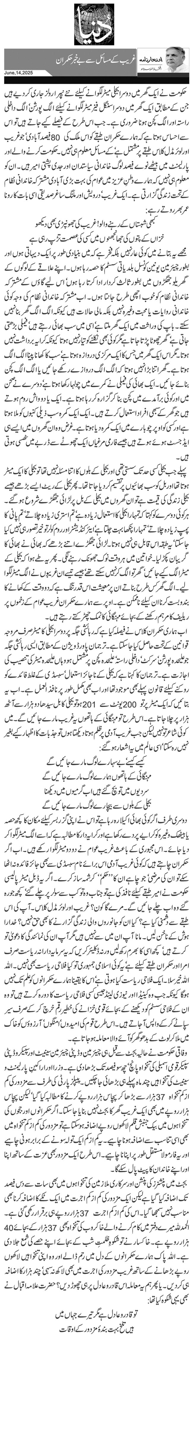 حکومت نے ایک گھر میں دوسرا بجلی میٹر لگوانے کیلئے نئے نیپرا رولز جاری کر دیے ہیں جن کے مطابق ایک گھر میں دوسرا سنگل فیز میٹر لگوانے کیلئے الگ پورشن‘ الگ داخلی راستہ اور الگ کچن ہونا ضروری ہے۔ جب اس طرح کے فیصلے کیے جاتے ہیں تو اس سے احساس ہوتا ہے کہ ہمارے حکمران طبقے کو اس ملک کی 80 فیصد آبادی‘ جو غریب اور لوئر مڈل کلاس طبقے پر مشتمل ہے‘ کے مسائل معلوم ہی نہیں۔ حکومت کرنے والے اور پارلیمنٹ میں بیٹھے نوے فیصد لوگ خاندانی سیاستدان اور جدی پشتی امیر ہیں۔ ان کو معلوم ہی نہیں کہ ہمارے وطنِ عزیز میں عوام کی بہت بڑی آبادی مشترکہ خاندانی نظام کے تحت زندگی گزار تی ہے۔ ایک غریب‘ درویش اور ملنگ ساغر صدیقی اسی بات کا رونا عمر بھر روتے رہے: