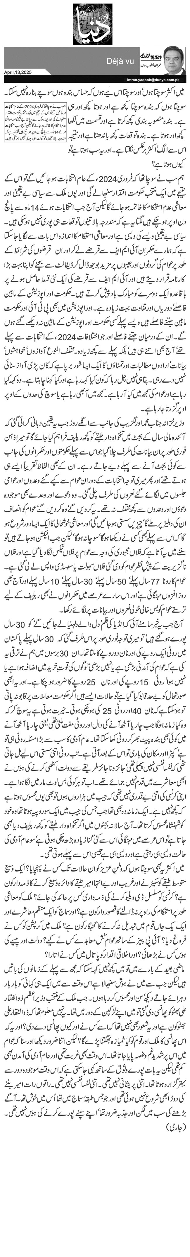 میں اکثر یہ بھی سوچتا ہوں کہ وطنِ عزیز کو ان حالات تک کس نے پہنچایا؟ ایک وسیع متوسط طبقے کو سکیڑنے اور غریب اور بے انتہا امیر طبقے کا دائرہ وسیع کرنے کا ذمہ دار کون ہے؟ کرنسی کو مسلسل ڈی ویلیو کرنے کی ذمہ داری کس پر عائد کی جائے؟ ملک کو معاشی طور پر استحکام کی راہ پر نہ ڈالنے کا قصور وار کون ہے؟ اور سماج کو ایک منظم معاشرے اور ایک یک جاں قوم میں تبدیل نہ کرنے کا گنہگار کون ہے؟ ملک میں کرپشن کو کس نے فروغ دیا؟ آئی پی پیز کے ساتھ عوام کُش معاہدے کس نے کیے؟ دولت اور پیسے کی ہوس کس نے بڑھائی؟ اور اخلاقی اقدار کو پاتال میں کس نے اتارا؟