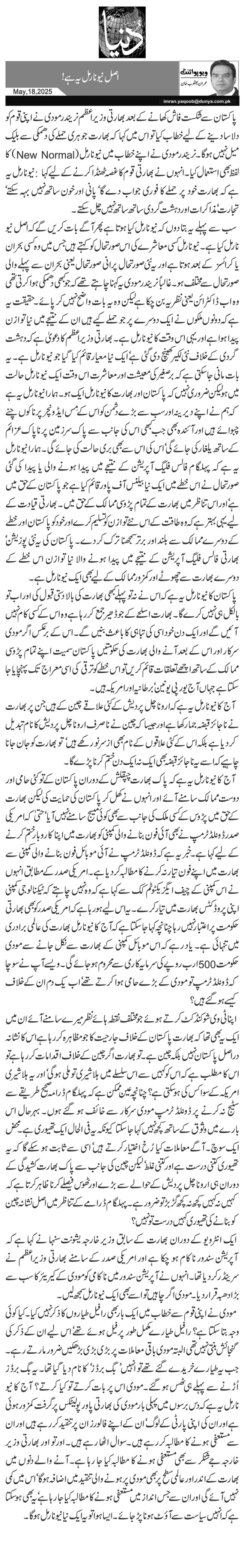 سب سے پہلے یہ بتا دوں کہ نیو نارمل کیا ہوتا ہے پھر آگے بات کریں گے کہ اصل نیو نارمل کیا ہے۔ نیو نارمل کسی معاشرے کی اس صورتحال کو کہتے ہیں جس میں وہ کسی بحران یا کرائسز کے بعد ہوتا ہے اور یہ نئی صورتحال پرانی صورتحال یعنی بحران سے پہلے والی صورتحال سے مختلف ہو۔ غالباً نریندر مودی یہ کہنا چاہتے تھے کہ جو کبھی دھمکی ہوا کرتی تھی وہ اب ڈاکٹرائن یعنی نظریہ بن چکا ہے لیکن وہ یہ بات واضح نہیں کر پائے۔ حقیقت یہ ہے کہ دونوں ملکوں نے ایک دوسرے پر جو حملے کیے ہیں ان کے نتیجے میں نیا توازن پیدا ہوا ہے اور یہی اس وقت کا نیو نارمل ہے۔ بھارتی وزیراعظم کا دعویٰ ہے کہ دہشت گردی کے خلاف نئی لکیر کھینچ دی گئی ہے‘ ایک نیا معیار قائم کیا گیا جو نیو نارمل ہے۔ یہ بات مانی جا سکتی ہے کہ برصغیر کی معیشت اور معاشرت اس وقت ایک نیو نارمل حالت میں ہو لیکن ضروری نہیں کہ پاکستان اور بھارت کا نیو نارمل ایک ہو۔ ہمارا نیو نارمل یہ ہے کہ ہم نے اپنے دیرینہ اور سب سے بڑے دشمن کو اس کے مِس ایڈونچر پر ناکوں چنے چبوائے ہیں اور آئندہ بھی جب کبھی اس کی جانب سے پاک سرزمین پر ناپاک عزائم کے ساتھ یلغار کی جائے گی‘ اس کی اس سے بھی بری حالت کی جائے گی۔ ہمارا نیو نارمل یہ ہے کہ پہلگام فالس فلیگ آپریشن کے نتیجے میں پیدا ہونے والی یا پیدا کی گئی صورتحال نے اس خطے میں ایک نیا بیلنس آف پاور قائم کیا ہے جو پاکستان کے حق میں ہے‘ اور اس تناظر میں بھارت کے تمام پڑوسی ممالک کے حق میں۔ بھارتی قیادت کے لیے یہی بہتر ہے کہ وہ طاقت کے اس نئے توازن کو تسلیم کرے اور خود کو پاکستان اور خطے کے دوسرے ممالک سے بلند اور برتر سمجھنا ترک کر دے۔ پاکستان کی یہ نئی پوزیشن‘ بھارتی فالس فلیگ آپریشن کے نتیجے میں پیدا ہونے والا نیا توازن اس خطے کے دوسرے بھارت سے چھوٹے اور کمزور ممالک کے لیے بھی ایک نیو نارمل ہے۔