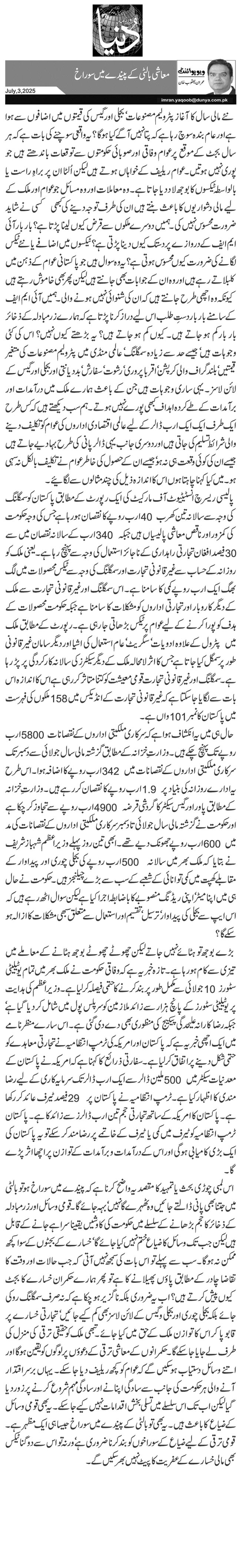 نئے مالی سال کا آغاز پٹرولیم مصنوعات‘ بجلی اور گیس کی قیمتوں میں اضافوں سے ہوا ہے اور عام بندہ سوچ رہا ہے کہ پتا نہیں آگے کیا ہو گا؟ یہ واقعی سوچنے کی بات ہے کہ ہر سال بجٹ کے موقع پر عوام وفاقی اور صوبائی حکومتوں سے توقعات باندھتے ہیں جو پوری نہیں ہوتیں۔ عوام ریلیف کے خواہاں ہوتے ہیں لیکن اُلٹا ان پر براہِ راست یا بالواسطہ ٹیکسوں کا بوجھ لاد دیا جاتا ہے۔ وہ معاملات اور وہ مسائل جو عوام اور ملک کے لیے مالی دشواریوں کا باعث بنتے ہیں ان کی طرف توجہ دینے کی کبھی کسی نے شاید ضرورت محسوس نہیں کی۔ ہمیں دوسرے ملکوں سے قرض کیوں لینا پڑتا ہے؟ بار بار آئی ایم ایف کے دروازے پر دستک کیوں دینا پڑتی ہے؟ ٹیکسوں میں اضافے یا نئے ٹیکس لگانے کی ضرورت کیوں محسوس ہوتی ہے؟ یہ وہ سوال ہیں جو پاکستانی عوام کے ذہن میں کلبلاتے رہے ہیں اور وہ ان کے جوابات بھی جانتے ہیں لیکن پھر بھی خاموش رہتے ہیں کیونکہ وہ اچھی طرح جانتے ہیں کہ ان کی شنوائی نہیں ہونے والی۔ ہمیں آئی ایم ایف کے سامنے بار بار دستِ طلب اس لیے دراز کرنا پڑتا ہے کہ ہمارے زر مبادلہ کے ذخائر بار بار کم ہو جاتے ہیں۔ کیوں کم ہو جاتے ہیں؟ یہ بڑھتے کیوں نہیں؟ اس کی کئی وجوہات ہیں‘ جیسے حد سے زیادہ سمگلنگ‘ عالمی منڈی میں پٹرولیم مصنوعات کی متغیر قیمتیں‘ بلند گراف والی کرپشن‘ اقربا پروری‘ رشوت‘ سفارش‘ بددیانتی اور بجلی اور گیس کے لائن لاسز۔ یہی ساری وجوہات ہیں جن کے باعث ہمارے ملک میں درآمدات اور برآمدات کے طے کردہ اہداف کبھی پورے نہیں ہوتے۔ ہم سب دیکھتے ہیں کہ کس طرح ایک طرف ایک ایک ارب ڈالر کے لیے عالمی اقتصادی اداروں کی عوام کو تکلیف دینے والی شرائط تسلیم کی جاتی ہیں اور دوسری جانب یہی ڈالر پانی کی طرح بہا دیے جاتے ہیں جیسے ان کی کوئی وقعت ہی نہ ہو‘ جیسے ان کے حصول کی خاطر عوام نے تکلیف بالکل نہ سہی ہو۔ میں کیا کہنا چاہتا ہوں اس کا اندازہ ذیل کی چند مثالوں سے لگائیے۔