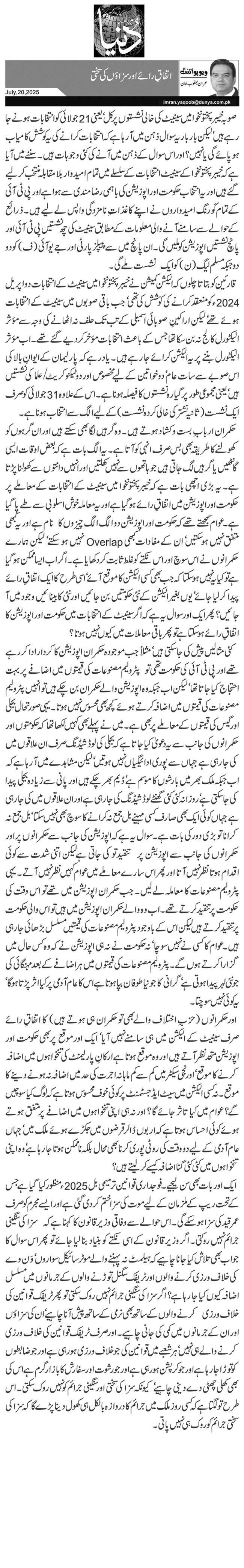 قارئین کو بتاتا چلوں کہ الیکشن کمیشن نے خیبر پختونخوا میں سینیٹ کے انتخابات دو اپریل 2024ء کو منعقد کرانے کی کوشش کی تھی‘ جب باقی صوبوں میں سینیٹ کے انتخابات ہوئے تھے‘ لیکن اراکینِ صوبائی اسمبلی کے تب تک حلف نہ اٹھانے کی وجہ سے مؤثر الیکٹورل کالج نہ بن سکا تھا جس کے باعث انتخابات مؤخر کر دیے گئے تھے۔ اب مؤثر الیکٹورل بننے پر یہ الیکشن کرائے جا رہے ہیں۔ یاد رہے کہ پارلیمان کے ایوانِ بالا کی اس صوبے سے سات عام‘ دو خواتین کے لیے مخصوص اور دو ٹیکنوکریٹ/ علما کی نشستیں ہیں‘ یعنی مجموعی طور پر گیارہ نشستوں کا فیصلہ ہونا ہے۔ اس کے علاوہ 31جولائی کو صرف ایک نشست (ثانیہ نشتر کی خالی کردہ نشست) کے لیے الگ سے انتخاب ہونا ہے۔