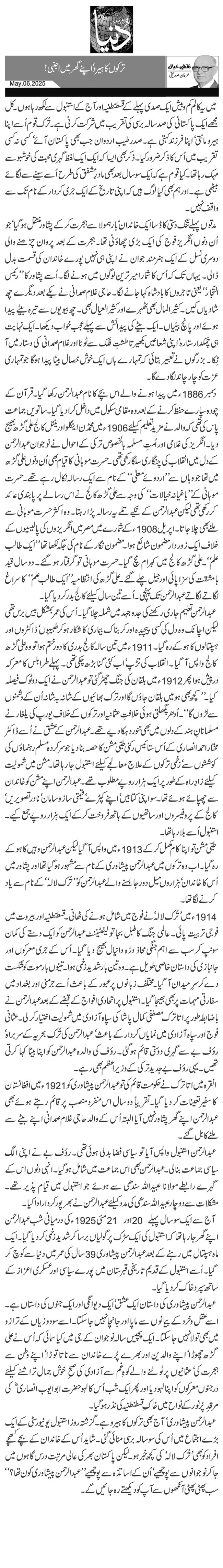 طبّی مشن تو اپنا کام مکمل کر کے 1913ء میں واپس آ گیا لیکن عبدالرحمن وہیں کا ہو کے رہ گیا۔ اب وہ ترکوں میں عبدالرحمن پیشاوری کے نام سے مشہور ہو گیا تھا اور پشاور میں اُس کا خاندان‘ ہزاروں میل دور جا بسنے والے عبدالرحمن کو ''تُرک لالہ‘‘ کے نام سے یاد کرنے لگا تھا۔
