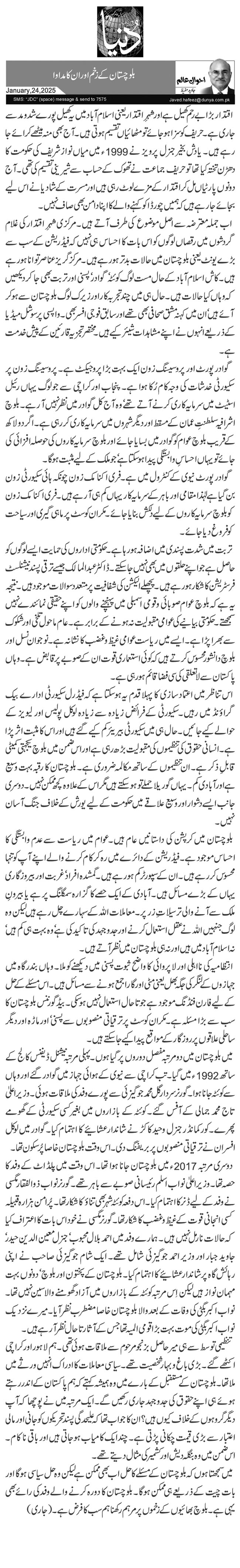 میں سمجھتا ہوں کہ بلوچستان کے مسئلے کا حل اب بھی ممکن ہے لیکن وہ حل سیاسی ہو گا اور بات چیت کے ذریعے ہی ممکن ہو گا۔ بلوچستان کا دورہ کرنے والے وفدکی رائے بھی یہی ہے۔ بلوچ بھائیوں کے زخموں پر مرہم رکھنا ہم سب کا فرض ہے۔ (جاری)