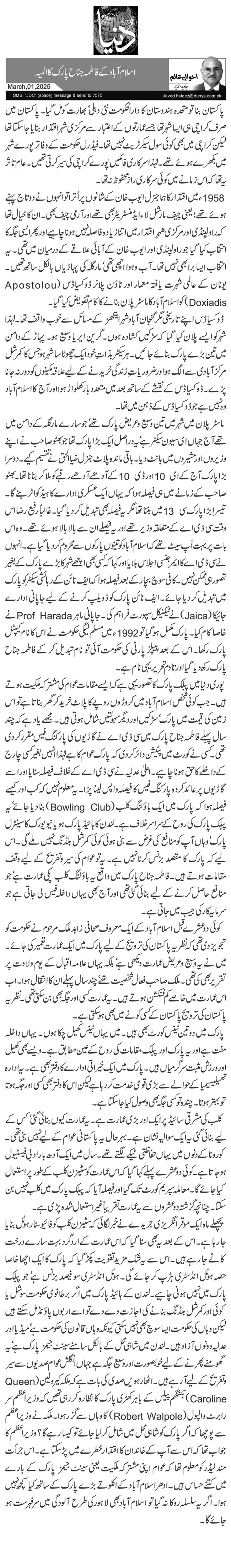 کوئی دوعشرے قبل اسلام آباد کے ایک معروف صحافی زاہد ملک مرحوم نے حکومت کو تجویز دی تھی کہ نظریہ پاکستان کی ترویج کے لیے پارک میں ایک عمارت تعمیر کی جائے۔ میں نے یہ وسیع وعریض عمارت دیکھی ہے‘ بلکہ یہاں علامہ اقبال کے یوم ولادت پر تقریر بھی کی تھی۔ ملک صاحب فعال شخصیت تھے‘ چند سال پہلے ان کا انتقال ہوا۔ اب اس عمارت میں خاصے کم فنکشن ہوتے ہیں۔ یہ عمارت کسی اور جگہ بھی بن سکتی تھی۔ نظریہ پاکستان کی ترویج پاکستان کے کسی کونے میں بھی ہو سکتی ہے۔