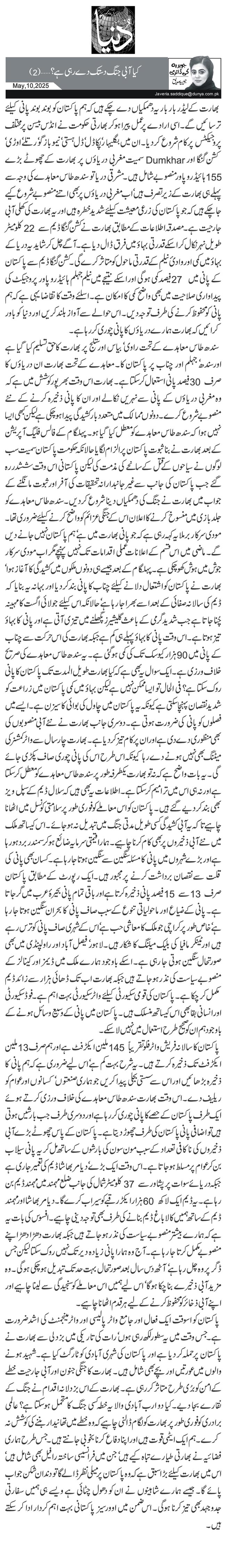 پاکستان کو اسوقت ایک فعال اور جامع واٹر پالیسی اور واٹر مینجمنٹ کی اشد ضرورت ہے۔ جس وقت میں یہ سطور لکھ رہی ہوں‘ رات کی تاریکی میں بزدلی سے بھارت نے پاکستان پر حملہ کر دیا ہے اور پاکستان کی شہری آبادی کو ٹارگٹ کیا ہے۔ شہید ہونے والوں میں عورتیں اور بچے بھی شامل ہیں۔ بھارت کا جنگی جنون اور آبی جارحیت خطے کے امن کو برُی طرح متاثر کر رہی ہے۔ بھارت کے اس بزدلانہ اقدام نے جنگ کے نقارے بجا دیے۔ کیا دو ارب آبادی والا یہ خطہ کسی جنگ کا متحمل ہو سکتا ہے؟ عالمی برادری کو فوری طور پر بھارت کو لگام ڈالنی چاہیے کہ وہ خطے میں تھانیدار بننے کی کوشش نہ کرے۔ ہم ایک ایٹمی قوت ہیں اور اپنا دفاع کرنا بخوبی جانتے ہیں۔ جس طرح ہماری فضائیہ نے بھارتی طیارے تباہ کیے ہیں‘ جن میں فرانسیسی ساختہ رافیل بھی شامل ہیں‘ اس میں بھارت کیلئے بڑا سبق ہے کہ وہ پاکستان پر میلی نظر ڈالے گا تو دندان شکن جواب پائے گا۔ جیسے ہمارے شاہینوں نے ان کو دھول چٹائی ہے ویسے ہی ہمیں سفارتی جدوجہد بھی تیز کرنا ہوگی۔ اس ضمن میں اوورسیز پاکستانی بہت اہم کردار ادا کر سکتے ہیں۔