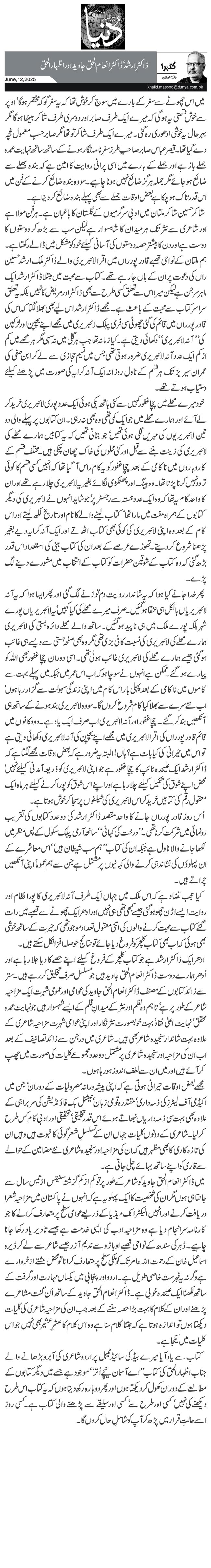 مجھے بعض اوقات حیرانی ہوتی ہے کہ اپنی پیشہ ورانہ مصروفیات کے دوران‘ جن میں اکیڈمی آف لیٹرز کی ذمہ داری‘ مقتدرہ قومی زبان‘ نیشنل بک فائونڈیشن کی سربراہی کے علاوہ بھی بہت سی ذمہ داریاں نبھاتے ہوئے اس قدر تخلیقی‘ تحقیقی اور ادبی کام کس طرح کر لیا۔ شاعری کے دونوں کلیات جہاں ان کے تسلسلِ شعر گوئی کا ثبوت ہیں وہیں ان کی تازہ کاری کا بھی مظہر ہیں کہ ان کی مزاحیہ اور سنجیدہ شاعری نئے مضامین کے حوالے سے قاری کو اپنے ساتھ بہائے چلی جاتی ہے۔