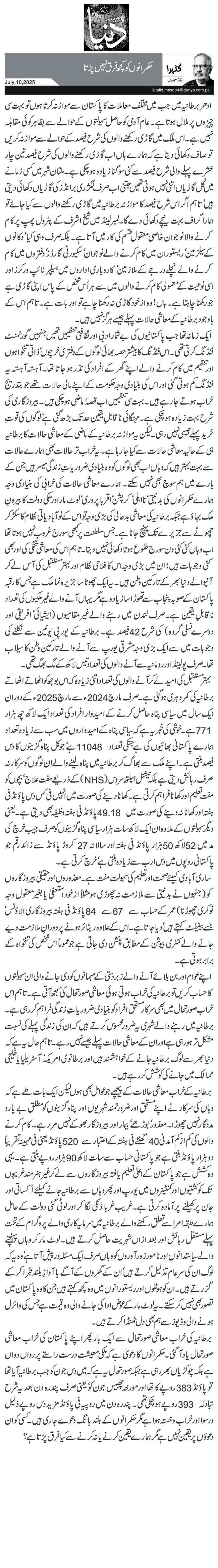 ایک زمانہ تھا جب پاکستانیوں کی بے شمار ادبی اور ثقافتی تنظیمیں تھیں جنہیں گورنمنٹ فنڈنگ کرتی تھی۔ اس فنڈنگ کا بیشتر حصہ بھائی لوگوں کے دفتری خرچوں‘ ذاتی تنخواہوں اور تنظیم میں کام کرنے والے اپنے گھر کے افراد کی نذر ہو جاتا تھا۔ آہستہ آہستہ یہ فنڈنگ کم ہوتی گئی اور اس کی بنیادی وجہ حکومت کے اپنے مالی حالات تھے جو بتدریج خراب ہوتے جا رہے ہیں۔ بہت سی تنظیمیں اب قصۂ ماضی ہو چکی ہیں۔ بیروزگاری کی شرح بہت زیادہ ہو چکی ہے۔ مہنگائی ناقابلِ یقین حد تک بڑھ گئی ہے‘ لوگوں کی قوتِ خرید پہلے جیسی نہیں رہی۔ لیکن یہ موازنہ برطانیہ کے ماضی کے معاشی حالات کا برطانیہ ہی کے حالیہ معاشی حالات سے کیا جا رہا ہے۔ یہ خراب تر حالات بھی ہمارے حالات سے بہت بہتر ہیں کہ وہاں اب بھی لوگوں کو وہ بنیادی ضروریاتِ زندگی میسر ہیں جن کے بارے میں ہم سوچ بھی نہیں سکتے۔ ہمارے معاشی حالات کی خرابی کی بنیادی وجہ ہمارے حکمرانوں کی بدنیتی‘ نااہلی‘ کرپشن‘ اقربا پروری‘ لوٹ مار اور ملکی دولت کا بیرونِ ملک بہاؤ ہے جبکہ برطانیہ کی معاشی بدحالی کی بڑی وجہ تو اس کے نو آبادیاتی نظام کا سکڑ کر چھوٹے سے جزیرے تک پہنچ جانا ہے۔ جس سلطنت پر کبھی سورج غروب نہیں ہوتا تھا اب وہاں کئی کئی دن سورج طلوع ہوتا دکھائی نہیں دیتا۔ تاہم اس کی معاشی تنگی کی اور بھی کئی وجوہات ہیں؛ ان میں بڑی وجہ اس کا فلاحی نظام اور بہتر مستقبل کی آس لے کر آنیوالے دنیا بھر کے تارکین وطن ہیں۔ یہ ایک چھوٹا سا جزیرہ نما ملک ہے جس کا رقبہ پاکستان کے صوبہ پنجاب سے تھوڑا سا زیادہ ہے مگر یہاں آنے والے غیر ملکیوں کی تعداد ناقابلِ یقین ہے۔ صرف لندن میں رہنے والے غیر مقامیوں (ایشیائی‘ افریقی اور دوسرے نسلی گروہ) کی شرح 42فیصد ہے۔ برطانیہ کے یورپی یونین سے نکلنے کی وجوہات میں سے ایک بڑی وجہ مشرقی یورپ سے آنے والے تارکین وطن کا سیلاب تھا۔ صرف پولینڈ اور رومانیہ سے آنے والوں کی تعداد تیس لاکھ کے لگ بھگ تھی۔