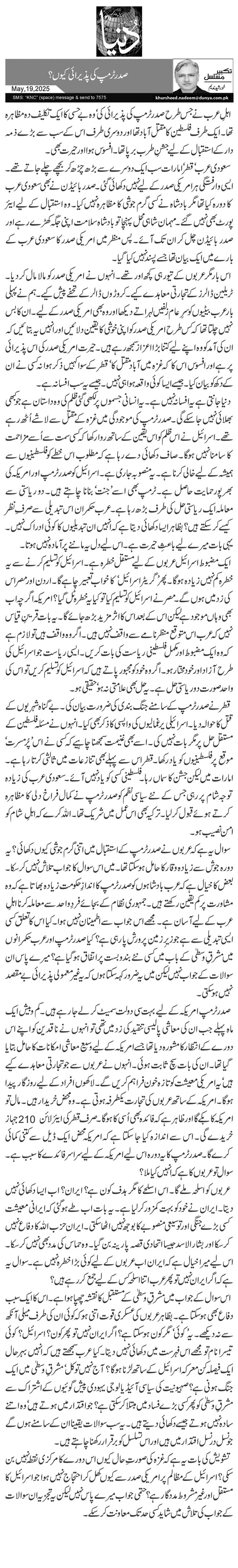 تشویش کی بات یہ ہے کہ غزہ کی صورتِ حال کیوں اس دورے کا مرکزی نقطہ نہیں بن سکی؟ اسرائیل کے مظالم پر امریکی صدر سے کیوں کھل کر احتجاج نہیں ہوا جو اسرائیل کا مستقل اور غیر مشروط مددگار ہے؟ حتمی جواب میرے پاس نہیں لیکن یہ تجزیہ ان سوالات کے جواب کی تلاش میں شاید کسی حد تک معاونت کر سکے۔