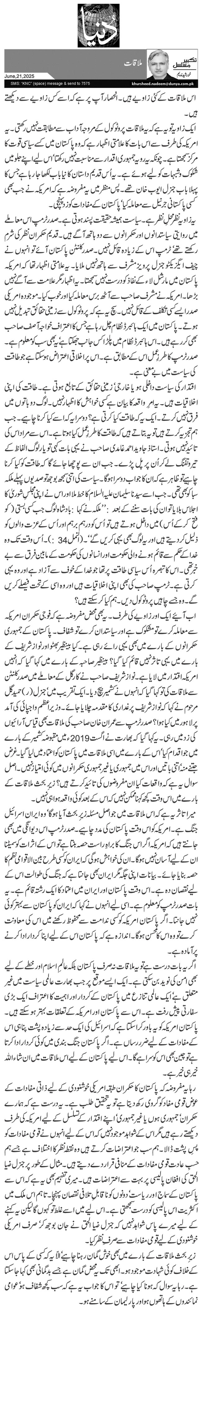 میرا تاثر یہ ہے کہ اس ملاقات میں جو اصل مسئلہ زیرِ بحث آیا ہو گا‘ وہ ایران اسرائیل جنگ ہے۔ امریکہ کو اس وقت پاکستان کی مدد چاہیے۔ صدر ٹرمپ اس دیوانگی میں بھی جانتے ہیں کہ امریکہ اگر اس جنگ کا براہِ راست حصہ بنتا ہے تو اس کے اثرات کو سمیٹنا ان کے لیے آسان نہیں ہو گا۔ ان کی خواہش ہو گی کہ ایران کو کسی طرح بین الاقوامی نظم کا حصہ بنایا جائے۔ بیانات اپنی جگہ مگر ایران بھی جانتا ہے کہ جنگ کی طوالت اس کے لیے نقصان دہ ہے۔ اس وقت پاکستان اور ایران میں اعتماد کا ایک رشتہ قائم ہے۔ یہ بات صدر ٹرمپ کو معلوم ہے۔ اسی لیے انہوں نے کہا کہ ایران کو پاکستان سے بہتر کوئی نہیں جانتا۔ اگر پاکستان امریکہ کو کسی ندامت سے محفوظ رکھنے میں اس کی معاونت کرے تو وہ اس کا محسن ہو گا۔ اندازہ ہے کہ پاکستان اس کے لیے اپنا کردار ادا کرنے پر آمادہ ہے۔