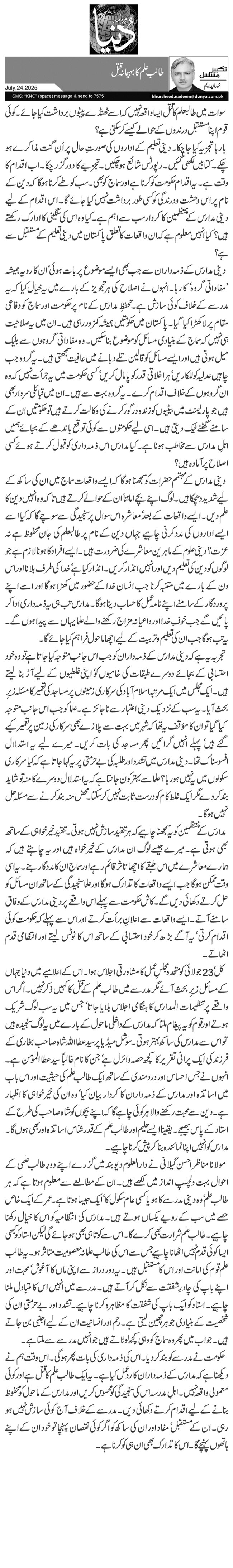 مولانا مناظر احسن گیلانی نے دارالعلوم دیوبند میں گزرے اپنے دورِ طالب علمی کے احوال بہت دلچسپ انداز میں لکھے ہیں۔ ان کے مطالعے سے معلوم ہوتا ہے کہ ہر طالب علم‘ وہ دینی مدرسے کا ہو یا کسی عام سکول کا‘ ایک جیسا ہوتا ہے۔ عمر کے ایک خاص حصے میں سب کے رویے یکساں ہوتے ہیں۔ مدارس کی انتظامیہ کو اس کا خیال رکھنا چاہیے۔ طالب علم شرارت بھی کرے گا۔ اس سے کوتاہی بھی ہو جائے گی لیکن استاد کو کبھی ایسا کوئی قدم نہیں اٹھانا چاہیے جس سے اس کی طالب علمانہ معصومیت متاثر ہو۔ یہ طالب علم قوم کی امانت اور اس کا مستقبل ہیں۔ یہ دور دراز سے اپنی ماں کا آغوش‘ محبت اور اپنے باپ کی چادرِ شفقت سے نکل کر آتے ہیں۔ مدرسے میں انہیں اس کا متبادل ملنا چاہیے۔ استاد کو ایک باپ کی شفقت کا مظاہرہ کرنا چاہیے۔ تشدد اور بے حرمتی ان کی شخصیت کے بنیادی جوہر چھین لیتی ہے۔ رحم اور انسانیت ان کے لیے اجنبی بن جاتے ہیں۔ جواب میں پھر وہ سماج کو وہی کچھ لوٹاتے ہیں جو انہیں مدرسے سے ملتا ہے۔