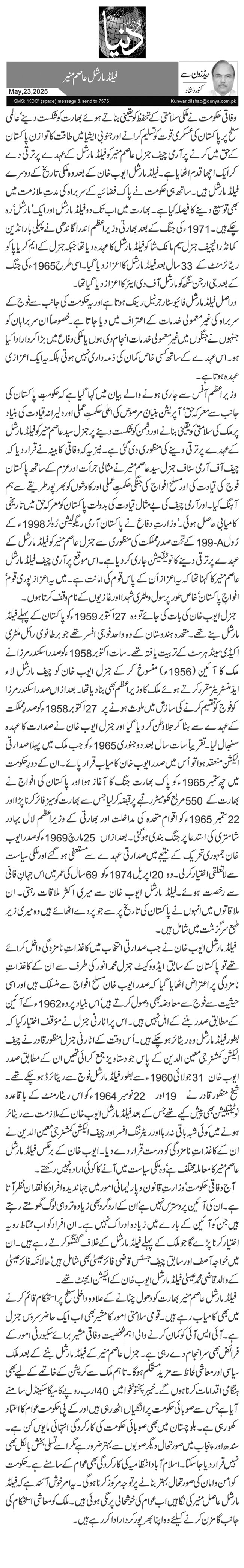 وفاقی حکومت نے ملکی سلامتی کے تحفظ کو یقینی بناتے ہوئے بھارت کو شکست دینے‘ عالمی سطح پر پاکستان کی عسکری قوت کو تسلیم کرانے اور جنوبی ایشیا میں طاقت کا توازن پاکستان کے حق میں کرنے پر آرمی چیف جنرل عاصم منیر کو فیلڈ مارشل کے عہدے پر ترقی دے کر ایک اچھا قدم اٹھایا ہے۔ فیلڈ مارشل ایوب خان کے بعد وہ ملکی تاریخ کے دوسرے فیلڈ مارشل ہیں۔ ساتھ ہی حکومت نے پاک فضائیہ کے سربراہ کی مدتِ ملازمت میں بھی توسیع دینے کا فیصلہ کیا ہے۔ بھارت میں اب تک دو فیلڈ مارشل اور ایک 'مارشل‘ رہ چکے ہیں۔ 1971ء کی جنگ کے بعد بھارتی وزیراعظم اندرا گاندھی نے پہلی بار انڈین کمانڈر انچیف جنرل سیم مانک شا کو فیلڈ مارشل کا عہدہ دیا تھا جبکہ جنرل کے ایم کریاپا کو ریٹائرمنٹ کے 33 سال بعد فیلڈ مارشل کا اعزاز دیا گیا۔ اسی طرح 1965ء کی جنگ کے بعد جی ارجن سنگھ کو مارشل آف دی ایئر کا اعزاز دیا گیاتھا۔