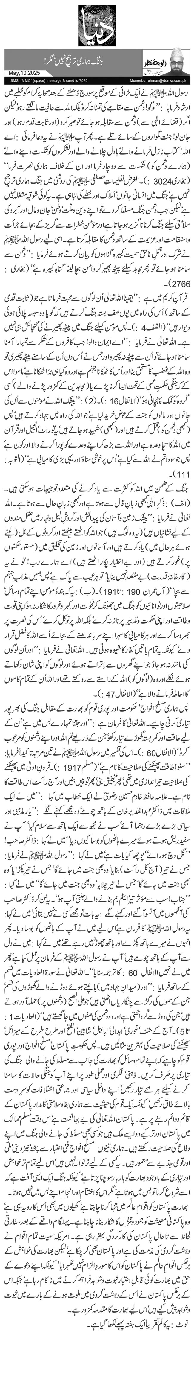 رسول اللہﷺ نے ایک لڑائی کے موقع پر سورج ڈھلنے کے بعد صحابۂ کرام کو خطبے میں ارشاد فرمایا: ''لوگو! دشمن سے مقابلے کی تمنا نہ کرو‘ بلکہ اللہ سے عافیت مانگتے رہو‘ لیکن اگر (قضائے الٰہی سے) دشمن سے مقابلہ ہو جائے تو صبر کرو (اور ثابت قدم رہو) اور جان لو! جنت تلواروں کے سائے تلے ہے۔ پھر آپﷺ نے یہ دعا فرمائی: اے اللہ! کتاب نازل فرمانے والے‘ بادل چلانے والے اور لشکروں کو شکست دینے والے‘ (ہمارے دشمن کو) شکست سے دوچار فرما اور ان کے خلاف ہماری نصرت فرما‘‘ (بخاری: 3024)۔ الغرض تعلیماتِ مصطفیﷺ کی روشنی میں جنگ ہماری ترجیح نہیں ہے‘ جنگ میں انسانی جانوں‘ اَملاک اور خطے کی تباہی ہے۔ یہ کوئی شوقیہ مشغلہ نہیں ہے‘ لیکن جب دشمن جنگ مسلّط کر دے تو اپنے دین وملّت‘ وطن‘ جان ومال اور آبرو کی سلامتی کیلئے جنگ کرنا ناگزیر ہو جاتا ہے اور مؤمن خطرات سے گریز کے بجائے جرأت واستقامت اور عزیمت کے ساتھ دشمن کا مقابلہ کرتا ہے۔ اسی لیے رسول اللہﷺ نے شرک اور قتلِ ناحق سمیت کبیرہ گناہوں کو بیان کرتے ہوئے فرمایا: ''دشمن سے سامنا ہو جائے تو پھر مجاہد کیلئے پیٹھ پھیر کر دامن بچا لینا گناہِ کبیرہ ہے‘‘ (بخاری: 2766)۔