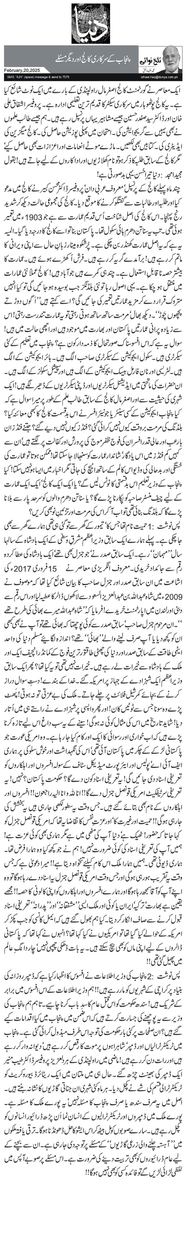 چند ماہ پہلے کالج کے پرنسپل‘ معروف عربی دان‘ پروفیسر ڈاکٹر محسن کبیر نے کالج میں مدعو کیا اور طلبہ اور طالبات سے گفتگو کرنے کا موقع دیا۔ کالج کی مجموعی حالت دیکھ کر شدید رنج پہنچا۔ اس کالج کی اصل شناخت اُس قدیم عمارت سے ہے جو 1903ء میں تعمیر ہوئی تھی۔ تب یہ سناتن دھرم ہائی سکول تھا۔ پاکستان بنا تو اسے کالج کا درجہ دیا گیا۔ المیہ یہ ہے کہ یہ اصل عمارت کھنڈر بن چکی ہے۔ پُرشکوہ مینار زبانِ حال سے اپنی ویرانی کا ماتم کر رہے ہیں! برآمدے گریہ کر رہے ہیں۔ فرش اُکھڑے ہوئے ہیں۔ عمارت کا بیشتر حصہ ناقابلِ استعمال ہے۔ چند ہی کمرے ہیں جو آباد ہیں! کالج عملاً نئی عمارات میں منتقل ہو چکا ہے۔ یہی اصول رہا تو نئی بلڈنگز جب بوسیدہ ہو جائیں گی تو کیا انہیں متروک قرار دے کر مزید عمارتیں تعمیر کی جائیں گی؟ اسے کہتے ہیں ''اَگوں دوڑ تے پچھوں چَوڑ‘‘۔ دیکھ بھال‘ مرمت ساتھ ساتھ ہوتی رہتی تو یہ عمارت تندرست رہتی! اس سے زیادہ پرانی عمارتیں پاکستان اور بھارت میں موجود ہیں اور اچھی حالت میں ہیں! سوال یہ ہے کہ اس افسوسناک صورتحال کا ذمہ دار کون ہے؟ پنجاب میں تعلیم کے کئی سیکرٹری ہیں۔ سکول ایجوکیشن کے سیکرٹری صاحب الگ ہیں۔ ہائر ایجو کیشن کے الگ ہیں۔ لٹریسی اور نان فارمل بیسک ایجوکیشن کے الگ ہیں اور سپیشل سکولز کے الگ ہیں۔ ان حضرات کی ماتحتی میں ایڈیشنل سیکرٹریوں اور ڈپٹی سیکرٹریوں کے ڈھیر لگے ہیں! ایک شہری کی حیثیت سے اور اصغر مال کالج کے سابق طالب علم کے طور پر میرا سوال ہے کہ کیا پنجاب ایجوکیشن کے کسی سینئر یا جونیئر افسر نے اس بدقسمت کالج کا کبھی معائنہ کیا؟ بلڈنگ کی مرمت بر وقت کیوں نہیں کرائی گئی؟ فنڈز کیوں نہیں دیے گئے؟ جتنے فنڈز ان با رعب اور عالی قدر افسران کی فوج ظفر موج کی پرورش اور کفالت پر لگتے ہیں‘ ان سے کہیں کم فنڈز میں اس یادگار‘ شاندار عمارت کو سنبھالا جا سکتا تھا! ممکن ہوتا تو عمارت کی خستگی اور بدحالی کی وڈیو اس کالم کے ساتھ اٹیچ کی جاتی مگر اخبار میں ایسا ہو نہیں سکتا! کیا پنجاب کے وزیر تعلیم اس بدقسمتی کا نوٹس لیں گے؟ یا ایک ایک کالج‘ ایک ایک عمارت کے لیے چیف منسٹر صاحبہ کو پکارنا پڑے گا؟ یا سناتن دھرم والوں کو سرحد پار سے بلانا پڑے گا کہ بلڈنگ بنائی تھی تو اب آکر اس کی مرمت اور تزئینِ نو بھی کریں ؟