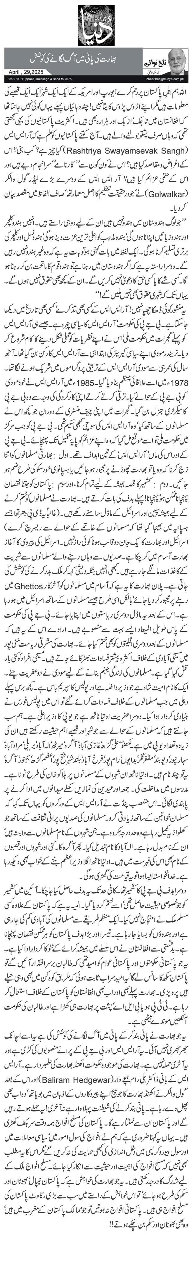 یہ جو بھارت نے پانی بند کر کے پانی میں آگ لگانے کی کوشش کی ہے یہ اسے اچانک جھرجھری نہیں آئی۔ یہ آر ایس ایس اور بی جے پی کے پرانے منصوبوں کی کڑی ہے اور یہ آخری حملہ نہیں ہے۔ بھارت کی موجودہ حکومت اکھنڈ بھارت کی علمبردار ہے۔ آر ایس ایس کے بانی ڈاکٹر بلی رام ہیجے وار (Baliram Hedgewar) اور اس کے بعد گول والکر نے اکھنڈ بھارت کا جو بیج اپنے پیروکاروں کے اذہان میں بویا تھا‘ وہ اب بھی پھل دے رہا ہے۔ پانی بند کرنے کی شیطنت پہلا وار ہے نہ آخری! یہ حملے ہوتے رہیں گے اور پاکستان ان سے نمٹتا رہے گا۔ پاکستان کی مسلح افواج ہمہ وقت سر بکف کھڑی ہیں۔ یہاں یہ کہنا ضروری ہے کہ ہم نے افواج کی سول امور میں‘ سیاسی معاملات میں اور سول بیوروکریسی میں دخل اندازی کی کبھی حمایت کی نہ کریں گے مگر اس کا یہ مطلب بھی نہیں کہ مسلح افواج کی اہمیت اور حیثیت سے انکار کیا جائے۔ مسلح افواج ملک کے لیے شہ رگ کا درجہ رکھتی ہیں۔ یہ جو بھارت کی خواہش ہے کہ پاکستان نیپال‘ بھوٹان اور سکم کی طرح ہو جائے‘ تو اس خواہش کے راستے میں سب سے بڑی رکاوٹ پاکستان کی مسلح افواج ہی ہیں۔ پاکستانی افواج نہ ہوتیں تو جو ممالک پاکستان کے مغرب میں ہیں‘ وہ بھی بھوٹان اور سکم بن چکے ہوتے!!