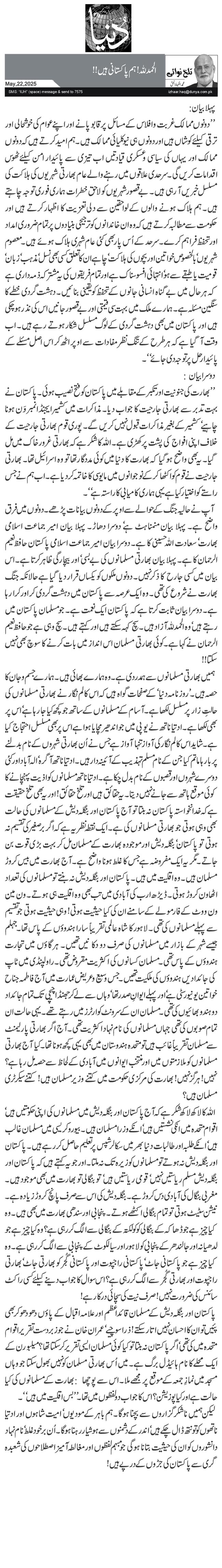آپ نے حالیہ جنگ کے حوالے سے اوپر کے دونوں بیانات پڑھے۔ دونوں میں فرق واضح ہے۔ پہلا بیان منمناہٹ ہے‘ دوسرا دھاڑ۔ پہلا بیان امیر جماعت اسلامی بھارت‘ سعادت اللہ حسینی کا ہے۔ دوسرا بیان امیر جماعت اسلامی پاکستان حافظ نعیم الرحمان کا ہے۔ پہلا بیان بھارتی مسلمانوں کی بے بسی‘ اور بیچارگی ظاہر کرتا ہے۔ اس بیان میں کسی جارح کا ذکر نہیں۔ دونوں ملکوں کو یکساں قرار دیا گیا ہے حالانکہ جنگ بھارت نے شروع کی تھی۔ وہ ایک عرصہ سے پاکستان میں دہشت گردی کر اور کرا رہا ہے۔ دوسرا بیان ثابت کرتا ہے کہ پاکستان ایک نعمت ہے۔ جو مسلمان پاکستان میں رہتے ہیں‘ وہ الحمدللہ آزاد ہیں۔ سچ کہہ سکتے ہیں اور کہتے ہیں۔ سچ وہی ہے جو حافظ نعیم الرحمان نے کہا ہے۔ کوئی بھارتی مسلمان اس انداز میں بات کرنے کا سوچ بھی نہیں سکتا!!