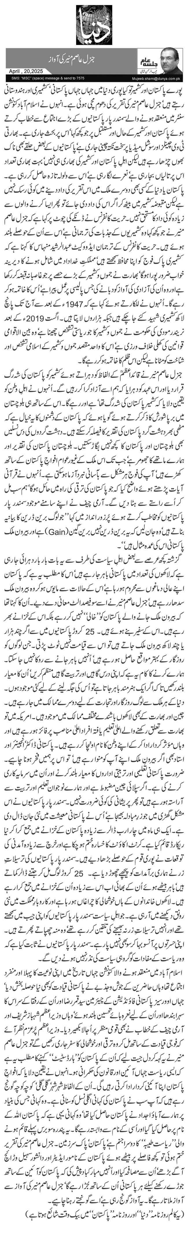 جنرل عاصم منیر نے قائداعظمؒ کے الفاظ کو دہراتے ہوئے کشمیر کو پاکستان کی شہ رگ قرار دیا اور اس عہد کو دہرایا کہ ہم اسے آزاد کرا کر رہیں گے۔ اُنہوں نے اہلِ وطن کو یقین دلایا کہ کشمیر پاکستان کی شہ رگ تھا‘ ہے اور رہے گا۔ اس کے ساتھ ہی بلوچستان میں برپا شورش کا ذکر کرتے ہوئے گویا ہوئے کہ پاکستان کے دشمنوں کا یہ خیال ہے کہ مٹھی بھر دہشت گرد پاکستان کی تقدیر کا فیصلہ کر سکتے ہیں۔ دہشت گردوں کی دس نسلیں بھی بلوچستان اور پاکستان کا کچھ نہیں بگاڑ سکتیں۔ بلوچستان پاکستان کی تقدیر اور ہمارے ماتھے کا جھومر ہے‘ جب تک اس ملک کے غیور عوام افواجِ پاکستان کے ساتھ کھڑے ہیں‘ آپ کی فوج ہر مشکل سے بآسانی نبرد آزما ہو سکتی ہے۔ اُنہوں نے قرآنی آیات پڑھتے ہوئے واضح کیا کہ جو پاکستان کی ترقی کی راہ میں حائل ہو گا‘ ہم سب مل کر اُسے راستے سے ہٹا دیں گے۔ آرمی چیف نے اپنے سامنے موجود سمندر پار پاکستانیوں کو مخاطب کرتے ہوئے پُرزور انداز میں کہا ''جو لوگ برین ڈرین کا بیانیہ بناتے ہیں‘ وہ جان لیں کہ یہ برین ڈرین نہیں برین گین (Gain) ہے اور بیرون ملک پاکستانی اس کی عمدہ مثال ہیں‘‘۔