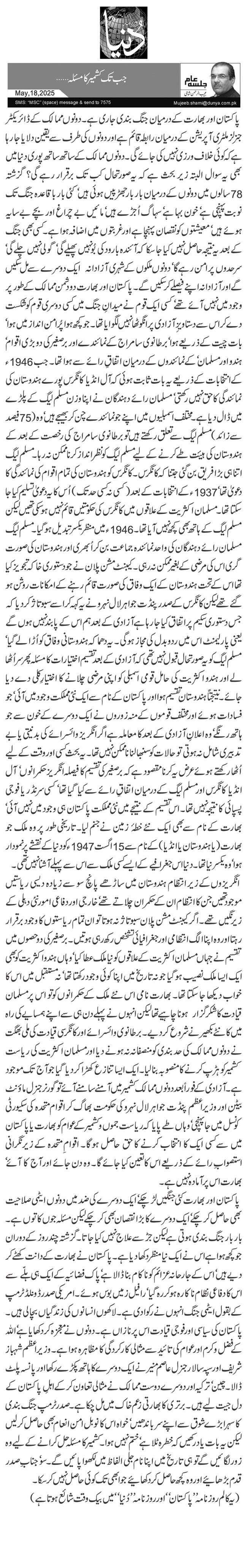 پاکستان اور بھارت کئی جنگیں لڑ چکے‘ ایک دوسرے کی ضد میں دونوں ایٹمی صلاحیت بھی حاصل کر چکے‘ ایک دوسرے کا بڑا نقصان بھی کر چکے لیکن مسئلہ جوں کا توں ہے۔ بار بار جنگ بندی ہوتی ہے لیکن جڑ سے علاج نہیں کیا جاتا۔ گزشتہ چند روز کے دوران جو کچھ ہوا ہے اس نے ایک نیا منظر دکھا دیا ہے۔ پاکستان نے بھارت کے دانت کھٹے کر دیے ہیں‘ اس کے جارحانہ عزائم کو ناکام بنا ڈالا ہے‘ پاک فضائیہ کے ایک ہی ہلّے سے اس کا دفاعی نظام ناکارہ ہو کر رہ گیا‘ رافیل زمیں بوس ہوئے۔ امریکی صدر ڈونلڈ ٹرمپ کے بقول ایٹمی جنگ انہوں نے رکوا دی ہے۔ لاکھوں انسانوں کی زندگیاں بچا لی ہیں۔ پاکستان کی سیاسی اور فوجی قیادت اس پر نازاں ہے۔ دونوں نے معجزہ کر دکھایا ہے‘ اللہ کے فضل و کرم اور عوام کی تائید سے مثالی کارکردگی کا مظاہرہ ہوا ہے۔ وزیراعظم شہباز شریف اور سپہ سالار جنرل عاصم منیر نے ایک دوسرے کا ہاتھ پکڑے رکھا اور پانسہ پلٹ ڈالا۔ چین‘ ترکیہ اور دوسرے دوست ممالک نے مثالی تعاون کر کے اہلِ پاکستان کے دل جیت لیے ہیں۔ برتری کا بھارتی زعم خاک میں مل چکا ہے۔ صدر ٹرمپ جنگ بندی کا سہرا بڑے شوق سے اپنے سر باندھیں‘ خواہ اس کا نوبل امن انعام بھی حاصل کر لیں لیکن یہ بات یاد رکھیں کہ خطرہ ٹلا ہے‘ ختم نہیں ہوا۔ کشمیر کا مسئلہ حل کرانے کے لیے وہ زور لگائیں گے تو ہی تاریخ میں اپنا نام جلی الفاظ میں لکھوا پائیں گے۔ سو‘ جنابِ صدر قدم بڑھائیے اور وہ کچھ حاصل کر دکھائیے جو ابھی تک کوئی حاصل نہیں کر سکا۔
