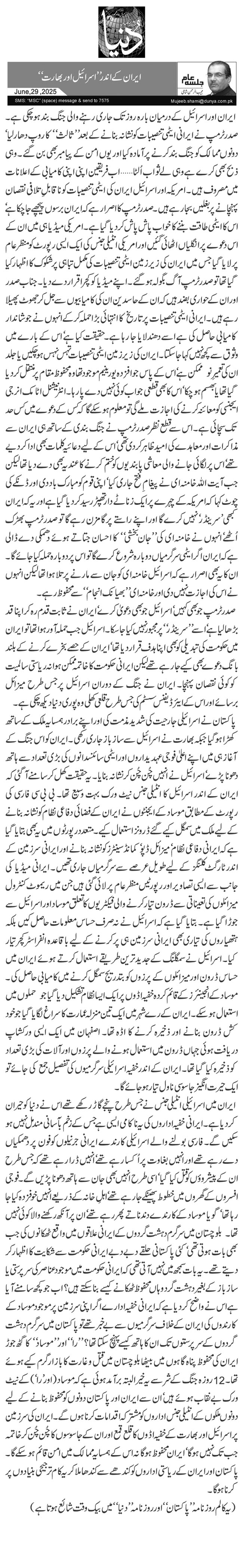 پاکستان نے اسرائیلی جارحیت کی شدید مذمت کی اور اپنے برادر ہمسایہ ملک کے ساتھ کھڑا ہو گیا جبکہ بھارت نے اسرائیل سے ساز باز جاری رکھی۔ ایران کو اس جنگ کے آغاز ہی میں اپنے اعلیٰ فوجی عہدیداروں اور ایٹمی سائنسدانوں کی بڑی تعداد سے ہاتھ دھونا پڑے‘ اسرائیل نے انہیں چُن چُن کر نشانہ بنایا۔ یہ حقیقت کھل کر سامنے آ گئی کہ ایران کے اندر اسرائیل کا انٹیلی جنس نیٹ ورک بہت وسیع تھا۔ بی بی سی فارسی کی رپورٹ کے مطابق موساد کے ایجنٹوں نے ایران کے فضائی دفاعی نظام کو نشانہ بنانے کے لیے ملک میں سمگل کیے گئے ڈرونز استعمال کیے۔ متعدد رپورٹوں میں یہ بھی بتایا گیا ہے کہ ایرانی دفاعی نظام‘ میزائل ڈپو‘ کمانڈ سینٹرز کو نشانہ بنانے اور ایرانی سرزمین کے اندر ٹارگٹ کلنگز کے لیے طویل عرصے سے سرگرمیاں جاری تھیں۔ ایرانی میڈیا کی جانب سے ایسی تصاویر اور رپورٹیں منظر عام پر لائی گئی ہیں جن میں ریموٹ کنٹرول میزائلوں کی تعیناتی سے ڈرون تیار کرنے والی فیکٹریوں کا تعلق موساد اور اسرائیل سے جوڑا گیا ہے۔ بتایا گیا ہے کہ اسرائیل نے نہ صرف حساس معلومات حاصل کیں بلکہ ہتھیاروں کی تیاری بھی ایرانی سرزمین ہی پر کرنے کے لیے باقاعدہ انفراسٹرکچر تیار کیا۔ اسرائیل نے سمگلنگ کے جدید ترین طریقے استعمال کرتے ہوئے ایران میں حساس ڈرون اور میزائلوں کے پرزوں کو بتدریج سمگل کرنے میں کامیابی حاصل کی۔ موساد کے انجینئرز کے قائم کردہ خفیہ اڈوں پر ایک ایسا نظام تشکیل دیا گیا جو حملوں میں استعمال ہو سکے۔ ایران کے رے شہر میں ایک تین منزلہ عمارت کا سراغ لگایا گیا جو خود کش ڈرون بنانے اور ذخیرہ کرنے کا اڈہ تھا۔ اصفہان میں ایک ایسی ورکشاپ دریافت ہوئی جہاں ڈرون میں استعمال ہونے والے پرزوں اور آلات کی بڑی تعداد کو ذخیرہ کیا گیا تھا۔ ایران کے اندر خفیہ اسرائیلی سرگرمیوں کی تفصیل جمع کی جائے تو ایک حیرت انگیز جاسوسی ناول تیار ہو جائے گا۔