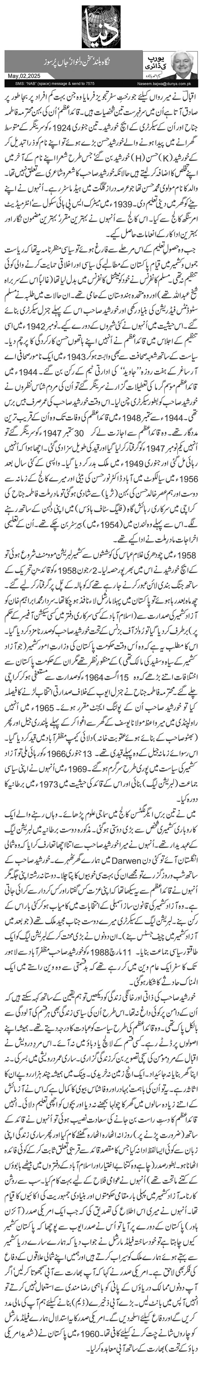 خورشید صاحب کی ذاتی اور خانگی زندگی کو دیکھیں تو ہم یقین کے ساتھ کہہ سکتے ہیں کہ اُن کے دامن پر کوئی داغ نہ تھا۔ اس طرح اُن کی سیاسی زندگی بھی ہر قسم کی آلودگی سے بالکل پاک تھی۔ وہ قائداعظم کی طرح سیاست کو عبادت کا درجہ دیتے تھے۔ ہمیشہ اپنے اصولوں پر ڈٹے رہے۔ کسی قسم کے لالچ یا دبائو میں نہ آئے۔ اس مردِ درویش نے اقبال کے مردِ مومن کی سچی تصویر بن کر زندگی گزاری۔ ساری عمر درویشی میں بسر کی۔ نہ اپنا گھر بنایا نہ جائیداد۔ ایک انچ زمین نہ خریدی۔ بینک میں ہمیشہ چند ہزار روپے ان کا اثاثہ رہے۔ یہ تو اُن کی باہمت‘ بہادر اور وفا شناس بیوی کا کمال ہے کہ اس نے آزمائش کے اتنے زیادہ سالوں میں گھر کا چولہا بجھنے نہ دیا اور بچوں کو اچھی تعلیم دلائی۔ انہیں قائداعظم کا دستِ راست بن جانے کی سعادت نصیب ہوئی تو اُنہوں نے قائد کے ساتھ (ضرورت پڑنے پر) روزانہ اٹھارہ اٹھارہ گھنٹے کام کیا اور پھر ساری زندگی اپنی زبان سے کوئی ایسا لفظ ادا نہ کیا جس کا مقصد قائد سے قریبی تعلق ثابت کر کے کوئی فائدہ اٹھانا ہو۔ بطور صدر (چاہے وہ کتنا بے اختیار اور اسلام آباد کے دفتروں میں بیٹھے بابوئوں کے کتنے ماتحت تھے) اُنہوں نے عوامی فلاح کے لیے بہت کام کیا۔ سب سے روشن کارنامہ آزاد کشمیر میں پہلی بار مقامی حکومتوں اور بنیادی جمہوریت کی اکائیوں کا قیام تھا۔ اُنہوں نے میری اس اطلاع کی تصدیق کی کہ جب ایک امریکی صدر (آئزن ہاور) پاکستان کے دورے پر آیا تو اُس نے صدر ایوب سے پوچھا کہ پاکستان کشمیر کیوں چاہتا ہے تو خود ساختہ فیلڈ مارشل نے جواب دیا کہ ہمارے سارے دریا کشمیر سے بہتے ہوئے ہمارے ملک کو سیراب کرتے ہیں اور ہمیں اپنے شمالی علاقوں کے دفاع کی فکر بھی لاحق ہے۔ امریکی صدر نے کہا کہ آپ بھارت سے آبی سمجھوتا کر لیں‘ اگر آپ دونوں ممالک دریائوں کے پانی کو باہمی رضا مندی سے استعمال نہیں کرتے تو انہیں آپس میں بانٹ لیں۔ بڑے آبی ذخیرے (ڈیم) بنانے کیلئے ہم آپ کی مالی مدد کریں گے اور دفاع کیلئے اسلحہ دیں گے۔ امریکی صدر کا یہ استدلال ہمارے فیلڈ مارشل کو چاروں شانے چت کرنے کیلئے کافی تھا۔ 1960ء میں پاکستان نے (شدید امریکی دبائو کے تحت) بھارت کے ساتھ آبی معاہدہ کر لیا۔