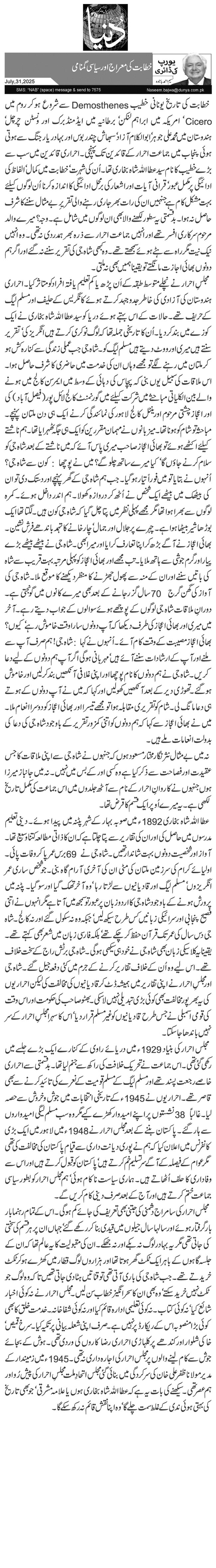 خطابت کی تاریخ یونانی خطیب Demosthenes سے شروع ہو کر روم میں Cicero‘ امریکہ میں ابراہم لنکن‘ برطانیہ میں ایڈمنڈبرک اور ونسٹن چرچل‘ ہندوستان میں محمد علی جوہر‘ ابوالکلام آزاد‘ سبھاش چندر بوس اور بہادر یار جنگ سے ہوتی ہوئی پنجاب میں جماعت احرار کے قائدین تک پہنچی۔ احراری قائدین میں سب سے بڑے خطیب کا نام سید عطا اللہ شاہ بخاری تھا۔ اُن کی شہرت‘ خطابت میں کمال‘ الفاظ کی ادائیگی پر مکمل عبور‘ قرانی آیات اور اشعار کی برمحل ادائیگی کا اندازہ کرنا اُن لوگوں کیلئے بہت مشکل کام ہے جنہیں ان کی رات بھر جاری رہنے والی تقریرِ بے مثال سننے کا شرف حاصل نہ ہوا۔ بدقسمتی یہ سطور لکھنے والا بھی ان لوگوں میں شامل ہے۔ وجہ؟ میرے والد مرحوم سرکاری افسر تھے اور انہیں جماعت احرار سے ذرہ بھر ہمدردی نہ تھی۔ وہ انہیں نیک نیت مگر راہ سے ہٹے ہوئے سمجھتے تھے۔ وہ کبھی شاہ جی کی تقریر سننے نہ گئے اور اگر ہم دونوں بھائی اجازت مانگتے تو یقیناہمیں بھی نہ ملتی۔