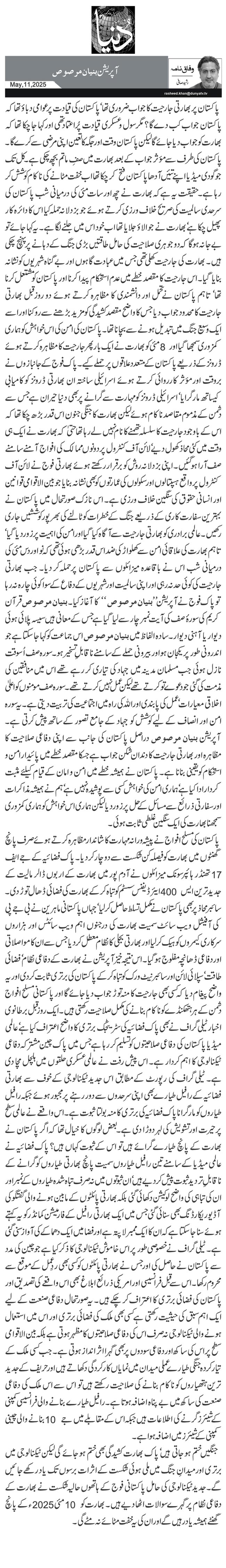پاکستان پر بھارتی جارحیت کا جواب ضروری تھا‘ پاکستان کی قیادت پر عوامی دباؤ تھا کہ پاکستان جواب کب دے گا؟ مگر سول و عسکری قیادت پُراعتماد تھی اور کہا جا چکا تھا کہ بھارت کو جواب دیا جائے گا لیکن پاکستان وقت اور جگہ کا تعین اپنی مرضی سے کرے گا۔ پاکستان کی طرف سے مؤثر جواب کے بعد بھارت میں صفِ ماتم بچھ چکی ہے۔ کل تک جو گودی میڈیا اپنے تئیں آدھا پاکستان فتح کر چکا تھا اب خفت مٹانے کی ناکام کوشش کر رہا ہے۔ حقیقت یہ ہے کہ بھارت نے چھ اور سات مئی کی درمیانی شب پاکستان کی سرحدی سالمیت کی صریح خلاف ورزی کرتے ہوئے جو بزدلانہ حملہ کیا اس کا دائرہ کار پھیل چکا ہے‘ بھارت نے جو الاؤ جلایا تھا اب خود اس میں جلنے لگا ہے۔ یہ کہا جائے تو بے جا نہ ہو گا کہ دو جوہری صلاحیت کی حامل طاقتیں بڑی جنگ کے دہانے پر پہنچ چکی ہیں۔ بھارت کی جارحیت کھلی تھی جس میں عبادت گاہوں اور بے گناہ شہریوں کو نشانہ بنایا گیا۔ اس جارحیت کا مقصد خطے میں عدم استحکام پیدا کرنا اور پاکستان کو مشتعل کرنا تھا‘ تاہم پاکستان نے تحمل اور دانشمندی کا مظاہرہ کرتے ہوئے دو روز قبل بھارتی جارحیت کا محدود جواب دیا جس کا واضح مقصد کشیدگی کو مزید بڑھنے سے روکنا اور اسے ایک وسیع جنگ میں تبدیل ہونے سے بچانا تھا۔ پاکستان کی امن کی اس خواہش کوہماری کمزوری سمجھا گیا اور 8 مئی کو بھارت نے ایک بار پھر جارحیت کا مظاہرہ کرتے ہوئے ڈرونز کے ذریعے پاکستان کے متعدد علاقوں پر حملے کیے۔ پاک فوج کے جانبازوں نے بروقت اور مؤثر کارروائی کرتے ہوئے اسرائیلی ساختہ ان بھارتی ڈرونز کو کامیابی کیساتھ مار گرایا‘ اسرائیلی ڈرونز کو مہارت سے گرانے پر بھی دنیا حیران ہے جس سے دشمن کے مذموم مقاصد ناکام ہوئے لیکن بھارت کا جنگی جنون اس قدر بڑھ چکا تھا کہ اس کے باوجود جارحیت کا سلسلہ تھمنے کا نام نہیں لے رہا تھا حتیٰ کہ بھارت نے ایک ہی وقت میں کئی محاذ کھول دیے‘ لائن آف کنٹرول پر دونوں ممالک کی افواج آمنے سامنے صف آرا ہو گئیں۔ اپنی بزدلانہ روش کو برقرار رکھتے ہوئے بھارتی فوج نے لائن آف کنٹرول پر واقع ہسپتالوں اور سکولوں کی عمارتوں کو بھی نشانہ بنایا جو بین الاقوامی قوانین اور انسانی حقوق کی سنگین خلاف ورزی ہے۔ اس نازک صورتحال میں پاکستان نے بہترین سفارت کاری کے ذریعے جنگ کے خطرات کو ٹالنے کی بھرپور کوششیں جاری رکھیں۔ عالمی برادری کو بھارتی جارحیت سے آگاہ کیا گیا اور امن کی اہمیت پر زور دیا گیا‘ تاہم بھارت کی علاقائی امن سے کھلواڑ کی ضد اس قدر بڑھی ہوئی تھی کہ نو اور دس مئی کی درمیانی شب اس نے باقاعدہ میزائلوں سے پاکستان پر حملہ کر دیا۔ جب بھارتی جارحیت کی کوئی حد نہ رہی اور اپنی سالمیت اور شہریوں کے دفاع کے سوا کوئی چارہ نہ رہا تو پاک فوج نے آپریشن ''بنیان مرصوص‘‘ کا آغاز کیا۔ بنیان مرصوص قرآن کریم کی سورۂ صف کی آیت نمبر چار سے لیا گیا ہے جس کے معانی ہیں سیسہ پلائی ہوئی دیوار یا آہنی دیوار۔ سادہ الفاظ میں بنیان مرصوص اس جماعت کو کہا جا سکتا ہے جو اندرونی طور پر یکجان ہو اور بیرونی حملے کے سامنے ناقابلِ تسخیر ہو۔ سورہ صف اُسوقت نازل ہوئی جب مسلمان مدینہ میں جہاد کی تیاری کر رہے تھے اس میں منافقین کی مذمت کی گئی جو دعوے تو کرتے تھے لیکن عمل نہیں کرتے تھے۔ سورہ صف مومنوں کو اعلیٰ اخلاقی معیارات‘ عمل کی پابندی اور اللہ کی راہ میں اجتماعیت کی تربیت دیتی ہے۔ یہ سورہ امن اور انصاف کے لیے کوشش کو جہاد کے جامع تصور کے ساتھ پیش کرتی ہے۔ آپریشن بنیان مرصوص دراصل پاکستان کی جانب سے اپنی دفاعی صلاحیت کا مظاہرہ اور بھارتی جارحیت کا دندان شکن جواب ہے جسکا مقصد خطے میں پائیدار امن و استحکام کو یقینی بنانا ہے۔ پاکستان نے ہمیشہ خطے میں امن و امان کے قیام کیلئے مثبت کردار ادا کیا ہے‘ ہماری امن کی خواہش کسی سے پوشیدہ نہیں ہے‘ ہم نے ہمیشہ مذاکرات اور سفارتی ذرائع سے مسائل کے حل پر زور دیا لیکن ہماری اس خواہش کو ہماری کمزوری سمجھنا بھارت کی ایک سنگین غلطی ثابت ہوئی۔