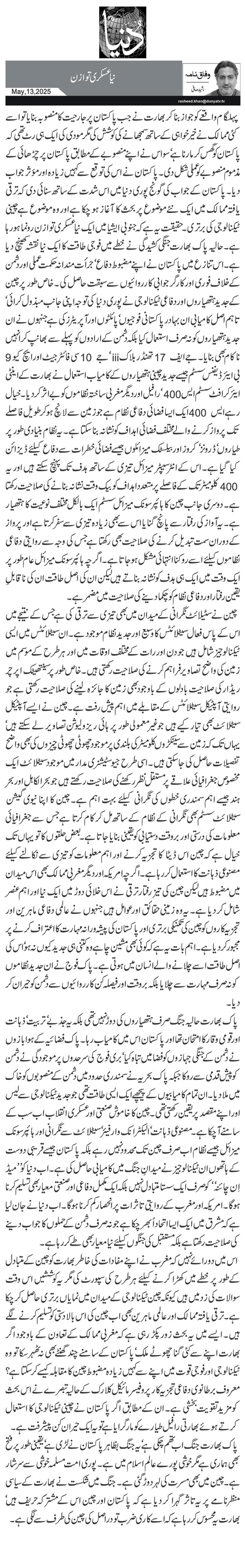 پہلگام واقعے کو جواز بنا کر بھارت نے جب پاکستان پر جارحیت کا منصوبہ بنایا تو اسے کئی ممالک نے خیر خواہی کے ساتھ سمجھانے کی کوشش کی مگر مودی کی ایک ہی رٹ تھی کہ پاکستان کو گھس کر مارنا ہے‘ سو اس نے اپنے منصوبے کے مطابق پاکستان پر چڑھائی کے مذموم منصوبے کو عملی شکل دی۔ پاکستان نے اس کی توقع سے کہیں زیادہ اور مؤثر جواب دیا۔ پاکستان کے جواب کی گونج پوری دنیا میں اس شدت کے ساتھ سنائی دی کہ ترقی یافتہ ممالک میں ایک نئے موضوع پر بحث کا آغاز ہو چکا ہے اور وہ موضوع ہے چینی ٹیکنالوجی کی برتری۔ حقیقت یہ ہے کہ جنوبی ایشیا میں ایک نیا عسکری توازن رونما ہو رہا ہے۔ حالیہ پاک بھارت جنگی کشیدگی نے خطے میں فوجی طاقت کا ایک نیا نقشہ کھینچ دیا ہے۔ اس تنازع میں پاکستان نے اپنے مضبوط دفاع‘ جرأت مندانہ حکمت عملی اور دشمن کے خلاف فوری اور کارگر جوابی کارروائیوں سے سبقت حاصل کی۔ خاص طور پر چین کے جدید ہتھیاروں اور دفاعی ٹیکنالوجی نے پوری دنیا کی توجہ اپنی جانب مبذول کرائی‘ تاہم اصل کامیابی ان بہادر پاکستانی فوجیوں‘ پائلٹوں اور آپریٹرز کی ہے جنہوں نے ان جدید ہتھیاروں کو نہ صرف استعمال کیا بلکہ دشمن کے ارادوں کو پہلے سے بھانپ کر انہیں ناکام بھی بنایا۔ جے ایف17 تھنڈر بلاک iii‘ جے 10 سی فائٹر جیٹ اور ایچ کیو 9 بی ایئر ڈیفنس سسٹم جیسے جدید چینی ہتھیاروں کے کامیاب استعمال نے بھارت کے اینٹی ایئر کرافٹ سسٹم ایس 400‘ رافیل اور دیگر مغربی ساختہ نظاموں کو بے اثر کر دیا۔ خیال رہے ایس400 ایک ایسا فضائی دفاعی نظام ہے جو زمین سے لانچ ہو کر طویل فاصلے تک پرواز کرنے والے مختلف فضائی اہداف کو نشانہ بنا سکتا ہے۔ یہ نظام بنیادی طور پر طیاروں‘ ڈرونز‘ کروز اور بیلسٹک میزائلوں جیسے فضائی خطرات سے دفاع کیلئے ڈیزائن کیا گیا ہے۔ اس کے انٹرسیپٹر میزائل تیزی کے ساتھ ہدف تک پہنچ سکتے ہیں اور یہ 400 کلومیٹر تک کے فاصلے پر متعدد اہداف کو بیک وقت نشانہ بنانے کی صلاحیت رکھتا ہے۔ دوسری جانب چین کا ہائپر سونک میزائل سسٹم ایک بالکل مختلف نوعیت کا ہتھیار ہے۔ یہ آواز کی رفتار سے پانچ گنا یا اس سے بھی زیادہ تیزی سے سفر کرتا ہے اور پرواز کے دوران سمت تبدیل کرنے کی صلاحیت بھی رکھتا ہے جس کی وجہ سے روایتی دفاعی نظاموں کیلئے اسے روکنا انتہائی مشکل ہو جاتا ہے۔ اگرچہ ہائپر سونک میزائل عام طور پر ایک وقت میں ایک ہی ہدف کو نشانہ بناتے ہیں لیکن ان کی اصل طاقت ان کی ناقابلِ یقین رفتار اور دفاعی نظام کو چکما دینے کی صلاحیت میں مضمر ہے۔