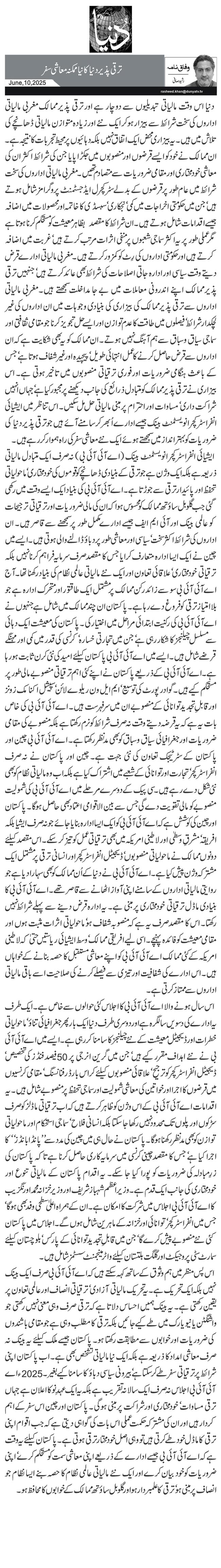 اس پس منظر میں ہم وثوق کے ساتھ کہہ سکتے ہیں کہ اے آئی آئی بی صرف ایک بینک نہیں بلکہ ایک تحریک ہے۔ یہ تحریک مالیاتی آزادی‘ ترقیاتی انصاف اور عالمی تعاون پر یقین رکھتی ہے۔ یہ بینک ہمیں احساس دلاتا ہے کہ ترقی صرف وہی معنی نہیں رکھتی جو واشنگٹن یا نیویارک میں طے کیے جائیں بلکہ ترقی کا مطلب وہی ہے جو مقامی باشندوں کی ضروریات اور خوابوں سے مطابقت رکھتا ہو۔ پاکستان جیسے ملک کیلئے یہ بینک نہ صرف معاشی امداد کا ذریعہ ہے بلکہ ایک نیا مالیاتی تشخص بھی ہے۔ اب پاکستان اپنی شرائط پر ترقیاتی سفر طے کر سکتا ہے‘ بیرونی سیاسی دبائو کا سامنا کیے بغیر ۔ 2025ء اے آئی آئی بی اجلاس نہ صرف ایک سالانہ تقریب ہے بلکہ یہ ایک عہدِ نو کا اعلان ہے جہاں ترقی مساوات‘ خودمختاری اور شراکت پر مبنی ہو گی۔ پاکستان اور چین اس سفر کے اہم کردار ہیں اور ان کی مشترکہ حکمت عملی اس بات کی گواہی دیتی ہے کہ جب اقوام اپنی ترقی کا ماڈل خود طے کرتی ہیں تو وہی اصل خودمختار ترقی ہوتی ہے۔ پاکستان کیلئے یہ وقت ہے کہ اے آئی آئی بی جیسے ادارے کے ذریعے اپنی معاشی سمت کو مستحکم کرے‘ اپنی ضروریات کو خود بیان کرے اور ایک نئے مالیاتی عالمی نظام کا حصہ بنے ایسا نظام جو انصاف پر مبنی ہو‘ ترقی کا علمبردار ہو اور گلوبل سائوتھ ممالک کے خوابوں کا محافظ ہو۔