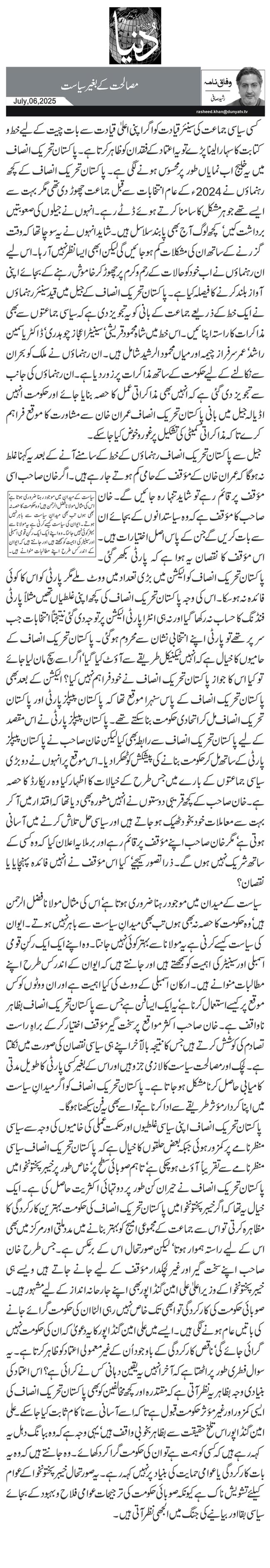 سیاست کے میدان میں موجود رہنا ضروری ہوتا ہے‘ اس کی مثال مولانا فضل الرحمن ہیں‘ وہ حکومت کا حصہ نہ بھی ہوں تب بھی میدانِ سیاست سے باہر نہیں ہوتے۔ ایوان کی سیاست کیسے کرنی ہے یہ مولانا سے بہتر کوئی نہیں جانتا۔ وہ اپنے ایک ایک رکنِ قومی اسمبلی اور سینیٹر کی اہمیت کو سمجھتے ہیں اور جانتے ہیں کہ ایوان کے اندر کس طرح اپنے مطالبات منوانے ہیں۔ ارکان اسمبلی کے ووٹ کی کیا اہمیت ہے اور ان ووٹوں کو کس موقع پر کیسے استعمال کرنا ہے‘ یہ ایک ایسا فن ہے جس سے پاکستان تحریک انصاف بظاہر ناواقف ہے۔ خان صاحب اکثر مواقع پر سخت گیر مؤقف اختیار کرکے براہِ راست تصادم کی کوشش کرتے ہیں جس کا نتیجہ بالآخر اپنے ہی سیاسی نقصان کی صورت میں نکلتا ہے۔ لچک اور مصالحت سیاست کا لازمی جزو ہیں اور اس کے بغیر کسی پارٹی کا طویل مدتی کامیابی حاصل کرنا مشکل ہو جاتا ہے۔ پاکستان تحریک انصاف کو اگر میدانِ سیاست میں اپنا کردار مؤثر طریقے سے ادا کرنا ہے تو اسے بھی یہ فن سیکھنا ہو گا۔