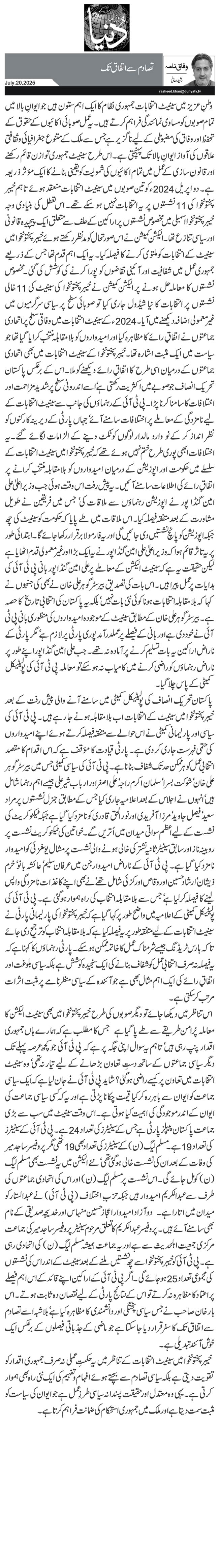 خیبرپختونخوا میں سینیٹ انتخابات کے تناظر میں یہ حکمتِ عملی نہ صرف جمہوری اقدار کو تقویت دیتی ہے بلکہ سیاسی تصادم سے بچتے ہوئے افہام و تفہیم کی ایک نئی راہ بھی ہموار کرتی ہے۔ یہی وہ معتدل اور حقیقت پسندانہ سیاسی طرزِ عمل ہے جو ایوان کی سیاست کو مثبت سمت دیتا ہے اور ملک میں جمہوری استحکام کی ضمانت فراہم کرتا ہے۔