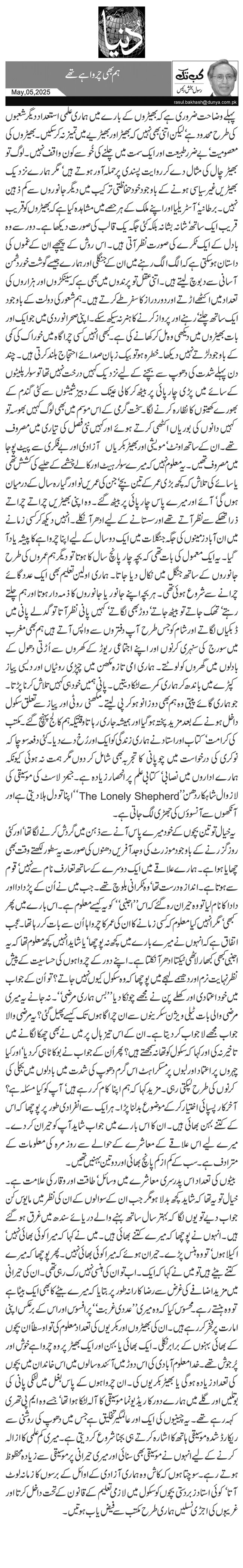 یہ خیال تو تین بچوں کے خود میرے پاس آنے سے ذہن میں گردش کرنے لگا تھا‘ اور کئی روز گزرنے کے باوجود موزرٹ کی وجد آفریں دھنوں کی صورت یہ سطور لکھتے وقت بھی چھایا ہوا ہے۔ ہمارے علاقے میں ایک دوسرے کے ساتھ تعارف نام سے نہیں‘ قوم سے ہوتا ہے۔ اندازہ درست تھا‘ وہ ٹکرانی بلوچ تھے۔ جب میں نے اُن کے پڑدادا اور دادا کا نام لیا تو وہ حیران رہ گئے کہ اس ''اجنبی‘‘ کو یہ کیسے معلوم ہے۔ اس بارے میں پھر کبھی‘ مگر انہیں کیا معلوم کہ کسی زمانے کا ان کی عمر کا چرواہا اُن سے بات کر رہا تھا۔ عجب اتفاق ہے کہ انہوں نے میرے بارے میں کچھ نہ پوچھا‘ یا شاید انہیں کچھ معلوم تھا کہ یہ اجنبی کبھی کبھار لاٹھی ٹیکتا ادھر آ نکلتا ہے۔ اپنے دور کے چرواہوں کی حساسیت کے پیش نظر نہایت نرم اور دھیمے لہجے میں پوچھا کہ وہ سکول کیوں نہیں جاتے؟ تو اُن کے جواب میں خود اعتمادی اور کھلے پن نے مجھے چونکا دیا ''بس ہماری مرضی‘‘۔ نہ جانے یہ میری مرضی والی بات ٹیلی ویژن سکرینوں سے ان چراگاہوں تک کیسے پھیل گئی؟ یہ مرضی والا جواب مجھے لاجواب کر دیتا ہے۔ ان کے اس تیز بال پر میں نے بھی چھکا لگانے میں تاخیر نہ کی اور کہا کہ سکول کو تھانہ سمجھتے ہیں؟ پھر اُن کے جواب نے بو کاٹا ہی کردیا‘ اور کیا چہروں پر اعتماد اور لبوں پر مسکراہٹ اس گرم دھوپ کی شدت میں بادلوں میں بجلی کی کرنوں کی طرح لپکتی رہی۔ مزید کہا کہ ہم اپنا کام کر رہے ہیں‘ آپ کو کیا مسئلہ ہے؟ آخرکار پسپائی اختیار کرکے موضوع بدلنا پڑا۔ ہر ایک سے انفرادی طور پر پوچھا کہ اس کے کتنے بہن بھائی ہیں۔ ان کا اس بارے میں جواب شاید آپ کو حیران کر دے۔ میرے لیے اس علاقے کے معاشرے کے حوالے سے روز مرہ کی معلومات کے مترادف ہے۔ سب کے کم از کم پانچ بھائی اور دو تین بہنیں تھیں۔