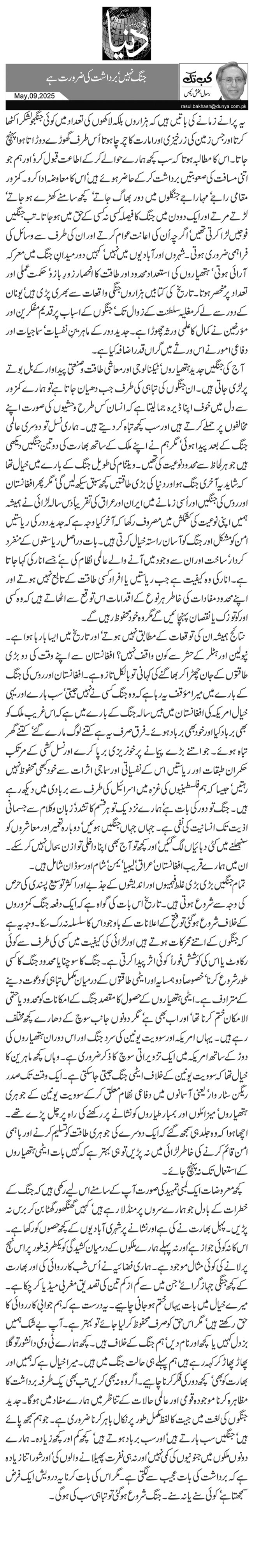 آج کی جنگیں جدید ہتھیاروں‘ ٹیکنالوجی اور معاشی طاقت وصنعتی پیداوار کے بل بوتے پر لڑی جاتی ہیں۔ ان جنگوں کی تباہی کی طرف جب دھیان جاتا ہے تو ہمارے کمزور سے دل میں خوف اپنا ڈیرہ جما لیتا ہے کہ انسان کس طرح وحشیوں کی صورت اپنے مخالفوں پر حملے کرتے ہیں اور سب کچھ تباہ کر دیتے ہیں۔ ہماری نسل تو دوسری عالمی جنگ کے بعد پیدا ہوئی‘ مگر ہم نے اپنے ملک کے ساتھ بھارت کی دو تین جنگیں دیکھی ہیں جو ہر لحاظ سے محدود نوعیت کی تھیں۔ ویتنام کی طویل جنگ کے بارے میں خیال تھا کہ شاید یہ آخری جنگ ہو اور دنیا کی بڑی طاقتیں کچھ سبق سیکھ لیں گی‘ مگر پھر افغانستان اور روس کی جنگیں اور اُسی زمانے میں ایران اور عراق کی تقریباً دس سالہ لڑائی نے ہمیشہ ہمیں اپنی نوعیت کی کشمکش میں مصروف رکھا کہ آخر کیا وجہ ہے کہ جدید دور کی ریاستیں امن کو مشکل اور جنگ کو آسان راستہ خیال کرتی ہیں۔ بات دراصل ریاستوں کے منفرد کردار‘ ساخت اور ان سے وجود میں آنے والے عالمی نظام کی ہے‘ جسے انارکی کہا جاتا ہے۔ انارکی وہ کیفیت ہے جب ریاستیں یا افراد کسی طاقت کے تابع نہیں ہوتے اور اپنے محدود مفادات کی خاطر ہر نوع کے اقدامات اس توقع سے اٹھاتے ہیں کہ وہ کسی اور کو تو زک یا نقصان پہنچائیں گے مگر وہ خود محفوظ رہیں گے۔