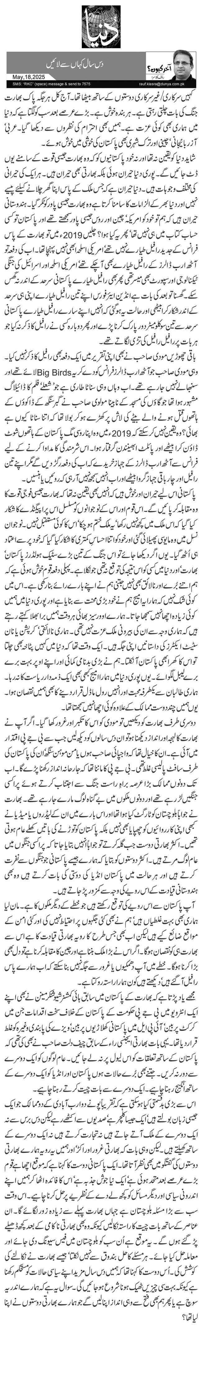 شاید دنیا کو یقین نہ تھا اور نہ خود پاکستانیوں کو کہ وہ بھارت جیسی قوت کے سامنے یوں ڈٹ جائیں گے۔ پوری دنیا حیران ہوئی بلکہ بھارتی بھی حیران ہیں۔ ہر ایک کی حیرانی کی مختلف وجوہات ہیں۔ دنیا حیران ہے کہ جس ملک کے پاس اپنا گھر چلانے کیلئے پیسے نہیں اور دنیا بھر کے الزامات کا سامنا کرتا ہے وہ بھارت جیسی پاور کو ٹکر گیا۔ ہندوستانی حیران ہیں کہ ہم تو خود کو امریکہ‘ چین اور روس جیسی پاور سمجھتے تھے اور پاکستان تو کسی حساب کتاب میں ہی نہیں تھا‘ پھر یہ کیا ہوا؟ چلیں 2019ء میں تو بھارت کے پاس فرانس کے جدید رافیل طیارے نہیں تھے‘ امریکی اسلحہ ابھی نہیں پہنچا تھا۔ اب کی دفعہ تو آٹھ ارب ڈالرز کے رافیل طیارے بھی آچکے تھے‘ امریکی اسلحہ اور اسرائیل کی جنگی ٹیکنالوجی اور سپورٹ بھی میسر تھی پھر بھی رافیل طیارے پاکستانی سرحد کے اندر نہ گھس سکے۔ گھسنا تو بعد کی بات ہے انڈین ایئر فورس اپنے تین رافیل طیارے اپنی ہی سرحد کے اندر شکار کرا بیٹھی اور حالت یہ ہو گئی کہ انہیں اپنے سارے رافیل طیارے پاکستانی سرحد سے تین سو کلومیٹر دور پارک کرنا پڑے اور پھر دوبارہ کسی نے رافیل کا ذکر نہ کیا جو ہر بات پر رافیل رافیل کی تڑی لگاتے تھے۔