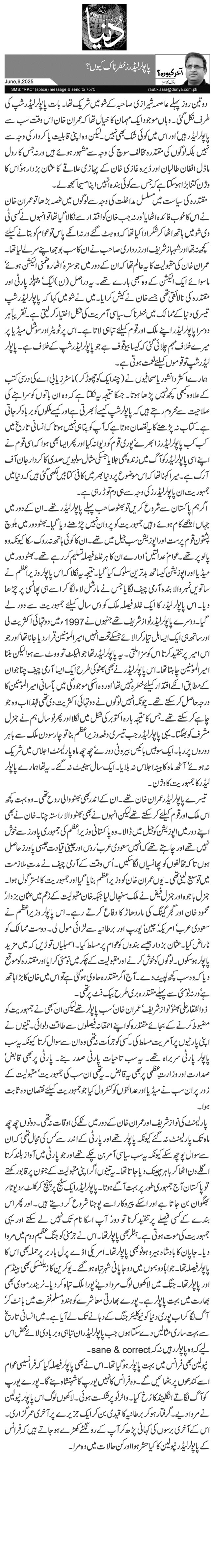 تیسرے پاپولر لیڈر عمران خان تھے۔ ان کے اندر بھی بھٹو والی روح تھی۔ وہ بہت کچھ اس ملک اور قوم کیلئے کر سکتے تھے لیکن انہوں نے بھی بھٹو والا راستہ چنا۔ خان نے بھی اپنے دور میں اپوزیشن کو جیل میں ڈالا۔ وہ پاکستانی وزیراعظم کی جمہوری پاورز سے خوش نہیں تھے اور چاہتے تھے کہ انہیں سعودی عرب‘ روس اور چینی قیادت جیسی پاورز حاصل ہوں تاکہ مخالفوں کو پھانسیاں لگا سکیں۔ اُس وقت کے آرمی چیف نے مدتِ ملازمت میں توسیع لینی تھی۔ یوں عمران خان کو وزیراعظم بنایا گیا اور جمہوریت کا بستر گول ہوا۔ جنرل باجوہ اور جنرل فیض نے ملک سنبھال لیا جبکہ خان مقبولیت کے زعم میں عثمان بزدار‘ محمود خان اور گجر گینگ کی ماردھاڑ کا دفاع کرتے رہے۔ اس پاپولر وزیراعظم نے سعودی عرب‘ امریکہ‘ چین‘ یورپ اور برطانیہ سے لڑائی مول لی۔ دوست ممالک کو ناراض کیا۔ عثمان بزدار جیسے بندوں کوعوام پر مسلط کیا۔ اسمبلیاں توڑیں کہ میں مزید پاپولر ہو سکوں۔ لوگوں کو خوش کرنے اور مقبولیت کے چکر میں نو مئی کرایا اور مقتدرہ کو موقع دیا کہ وہ سب کچھ لپیٹ دے۔ آج اگر مقتدرہ حاوی ہوگئی ہے تو اس میں خان کا بڑا ہاتھ ہے‘ ورنہ نو مئی سے پہلے مقتدرہ بری طرح بیک فٹ پر تھی۔