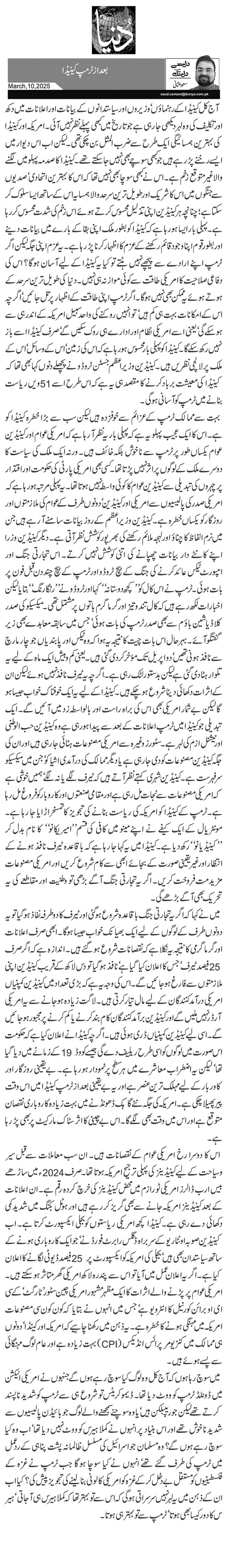 میں نے کہا کہ اگر یہ تجارتی جنگ باقاعدہ شروع ہو گئی اور ٹیرف کا دو طرفہ نفاذ ہو گیا تو یہ دونوں طرف کے لوگوں کے لیے ایک بھیانک خواب جیسا ہوگا۔ ابھی صرف اعلانات اور گرما گرمی کا نتیجہ یہ نکلا ہے کہ نقصانات شروع ہو گئے ہیں۔ اندازہ ہے کہ اگر صرف 25 فیصد ٹیرف‘ جس کا اعلان کیا گیا ہے‘ نافذ ہو گیا تو دس لاکھ کے قریب کینیڈین اپنی ملازمتوں سے فارغ ہو جائیں گے۔ اس کی وجہ یہ ہے کہ بڑی تعداد میں کینیڈین کمپنیاں امریکی درآمد کنندگان کے لیے مال تیار کرتی ہیں۔ لاگت زیادہ ہو جانے سے یہ امریکی آرڈر نہیں ملیں گے اور کینیڈین برآمد کنندگان کام بند کرنے یا کم کرنے پر مجبور ہو جائیں گے۔ اسی لیے کینیڈین کمپنیاں ڈری ہوئی ہیں۔ اگرچہ کینیڈا نے اعلان کیا ہے کہ حکومت اس صورت میں لوگوں کو اسی طرح ریلیف دے گی جیسے کووڈ 19 کے زمانے میں دیا گیا تھا‘ لیکن یہ اضطراب معاشرے میں ہر سطح پر نمودار ہو رہا ہے۔ بے یقینی روزگار اور کاوربار کے لیے مہلک ترین عنصر ہے اور یہ بے یقینی بعد از ٹرمپ کینیڈا میں اس وقت پیر پھیلا چکی ہے۔ امریکہ کی جگہ نئے گاہک ڈھونڈنے میں بہت زیادہ کاروباری نقصان متوقع ہے اور اس میں وقت بھی لگے گا۔ اس بے چینی کا اثر سٹاک مارکیٹ پر بھی پڑ رہا ہے۔