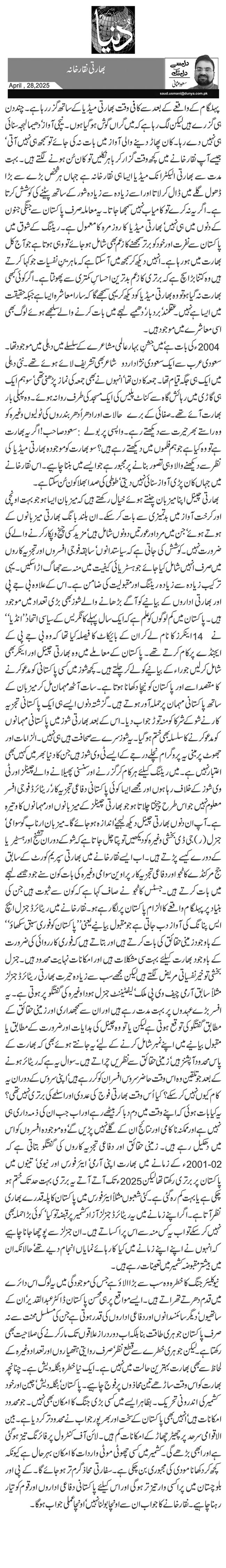 بھارتی چینل اپنا میزبان چنتے ہوئے خیال رکھتے ہیں کہ میزبان ایسا ہو جو بہت اونچی اور کرخت آواز میں بدتمیزی سے بات کر سکے۔ ان بلند بانگ بھارتی میزبانوں کے ہوتے ہوئے‘ جن میں مرد اور عورتیں دونوں شامل ہیں‘ مزید کسی چیخ وپکار کرنے والے کی ضرورت نہیں۔ کوشش کی جاتی ہے کہ سیاستدانوں‘ سابقہ فوجی افسروں اور تجزیہ کاروں میں صرف انہیں شامل کیا جائے جو ہسٹریائی کیفیت میں منہ سے جھاگ اڑا سکیں۔ یہی ترکیب زیادہ سے زیادہ ریٹنگ اور مقبولیت کی ضامن ہے۔ اس کے علاوہ بی جے پی اور بھارتی اداروں کے بیانیے کو آگے بڑھانے والے شوز بھی بڑی تعداد میں موجود ہیں۔ پاکستان میں کم لوگوں کو علم ہے کہ ایک سال پہلے کانگریس کے سیاسی اتحاد ''انڈیا‘‘ نے 14 اینکرز کا نام لے کر ان کے بائیکاٹ کا فیصلہ کیا تھا کہ وہ بی جے پی کے ایجنڈے پرکام کرتے تھے۔ پاکستان کے معاملے میں وہ بھارتی چینل اور اینکر بھی شامل کر لیں جو راء کے بیانیے کو لے کر چلتے ہیں۔ کچھ شوز میں کسی پاکستانی کو مدعو کرنے کا مقصد اسے اور پاکستان کو نیچا دکھانا ہوتا ہے۔ سات آٹھ مہمان مل کر میزبان کے ساتھ پاکستانی مہمان پر حملہ آور ہوتے ہیں۔ گزشتہ دنوں ایسے ہی ایک پاکستانی تجزیہ کار نے شو کے شرکا کو منہ توڑ جواب دیا۔ اس کے بعد بھارتی شوز میں پاکستانی مہمانوں کو مدعو کرنے کا سلسلہ بھی ختم ہو گیا۔ یہ شوز سرے سے صحافت ہیں ہی نہیں۔ الزامات اور جھوٹ پر مبنی یہ پروگرام نچلے درجے کے ایسے ٹی وی شوز ہیں جن کا دنیا بھر میں کہیں بھی اعتبار نہیں ہے۔ میں ریٹنگ کیلئے ہر کام کر گزرنے اور سنسنی پھیلانے والے چینلز اور ٹی وی شوز کے خلاف رہا ہوں اور مجھے ایسا کوئی پاکستانی دفاعی تجزیہ کار‘ ریٹائرڈ فوجی افسر معلوم نہیں جو اس طرح چیختا چلاتا ہو جو بھارتی چینلز کے میزبانوں اور مہمانوں کا وتیرہ ہے۔ آپ ان دنوں بھارتی چینل دیکھ لیجیے‘ اندازہ ہو جائے گا۔ میزبان ارناب گوسوامی‘ جنرل (ر) جی ڈی بخشی وغیرہ کو دیکھیں تو پتا چل جاتا ہے کہ شو کے دورا ن تشنج اور ہسٹیریا کے دورے کیسے پڑتے ہیں۔ اب ایسے نقار خانے میں بھارتی سپریم کورٹ کے سابق جج مرکنڈے کاٹجو اور دفاعی تجزیہ کار پراوین سوامی وغیرہ کی بات کون سنے جو دھیمے لہجے میں بات کرتے ہیں۔ جسٹس کاٹجو نے صاف کہا ہے کہ کون سے ثبوت ہیں جن کی بنیادپر پہلگام واقعے کا الزام پاکستان پر لگا رہے ہو۔ نقار خانے میں ریٹائرڈ جنرل ایچ ایس پنانگ کی آواز دب جاتی ہے جو مقبول بیانیے یعنی ''پاکستان کو فوری سبق سکھائو‘‘ کے باوجود زمینی حقائق کی بات کرتے ہیں اور بتاتے ہیں کہ فوری کارروائی کی ضرورت کے باوجود بھارت کیلئے بہت سی مشکلات ہیں اور امکانات نہایت محدود ہیں۔جنرل بخشی تو خیر نفسیاتی مریض لگتے ہیں لیکن مجھے سب سے زیادہ حیرت بھارتی ریٹائرڈ جنرلز مثلاً سابق آرمی چیف وی پی ملک‘ لیفٹیننٹ جنرل ہودا وغیرہ کی گفتگو پر ہوتی ہے۔ یہ افسر بڑے عہدوں پر بہت مدت رہے ہیں اور ان سے سمجھداری اور زمینی حقائق کے مطابق گفتگو کی توقع ہوتی ہے لیکن یا تو وہ چینل کی ہدایات اور ضرورت کے مطابق یا مقبول بیانیے میں اپنے نمبر شامل کرنے کے لیے‘ یہ جانتے ہوئے بھی کہ بھارت کے پاس محدود آپشنز ہیں‘ زمینی حقائق سے نظریں چراتے ہیں۔ سوال یہ ہے کہ ریٹائر ہونے کے بعد جو تلقین وہ اس وقت حاضر سروس افسران کو کر رہے ہیں‘ اپنی سروس کے دوران یہ کام کیوں نہیں کر سکے؟ کیا اُس وقت بھارتی فوج کی عددی اور اسلحے کی برتری نہیں تھی؟ یہ کیا بات ہوئی کہ اپنے وقت میں دم دبا کر بیٹھے رہے اور اب جب ان کی ذمہ داری ہی نہیں ہے اور ممکنہ ناکامی اور نتائج ان کے گلے نہیں پڑیں گے‘ وہ موجودہ افسروں کو اس میں دھکیل رہے ہیں۔ زمینی حقائق اور دفاعی تجزیہ کاروں کی گفتگو بتاتی ہے کہ 2001-02ء کے زمانے میں بھارت اپنی آرمی‘ ایئر فورس اور نیوی‘ تینوں میں پاکستان پر برتری رکھتا تھا لیکن 2025ء تک آتے آتے یہ برتری بہت حد تک ختم ہو چکی ہے یا بہت کم رہ گئی ہے۔ کئی شعبوں مثلاً ایئر فورس میں پاکستان کا پلہ قدرے بھاری نظر آتا ہے۔ اگر اپنے زمانے میں یہ ریٹائرڈ جن