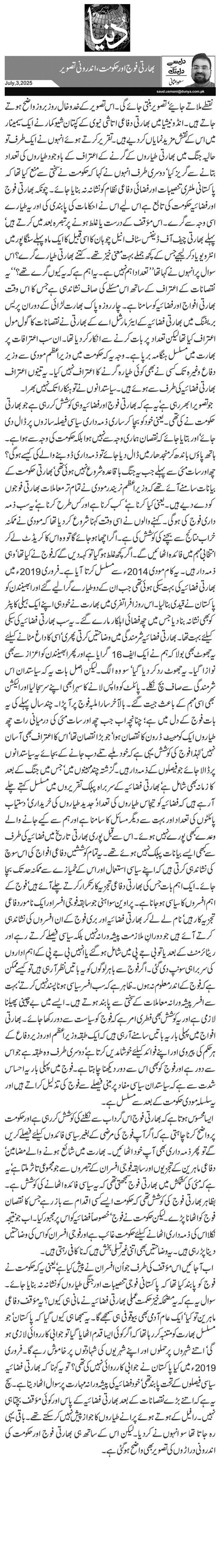 نقطے ملاتے جائیے‘ تصویر بنتی جائے گی۔ اس تصویر کے خد و خال روز بروز واضح ہوتے جاتے ہیں۔ انڈونیشیا میں بھارتی دفاعی اتاشی نیوی کے کپتان شیو کمار نے ایک سیمینار میں اس کے نقش مزید نمایاں کر دیے ہیں۔ تقریر کرتے ہوئے انہوں نے ایک طرف تو حالیہ جنگ میں بھارتی طیاروں کے گرنے کے اعتراف کے باوجود طیاروں کی تعداد بتانے سے گریز کیا‘ دوسری طرف انہوں نے کہا کہ حکومت نے سختی سے منع کیا تھا کہ پاکستانی ملٹری تنصیبات اور فضائی دفاعی نظام کو نشانہ نہ بنایا جائے۔ چونکہ بھارتی فوج اور فضائیہ حکومت کی تابع ہے اس لیے اس نے احکامات کی پابندی کی اور یہ طیارے اسی وجہ سے گرے۔ اس مؤقف کے درست یا غلط ہونے پر تبصرہ بعد میں کرتے ہیں‘ پہلے بھارتی چیف آف ڈیفنس سٹاف انیل چوہان کا اسی قبیل کا ایک ماہ پہلے سنگا پور میں انٹرویو یاد کر لیجیے جس کے کچھ جملے بہت معنی خیز تھے۔ کتنے بھارتی طیارے گرے؟ اس سوال پر انہوں نے کہا تھا ''تعداد اہم نہیں ہے۔ یہ اہم ہے کہ یہ کیوں گرے تھے؟‘‘ یہ نقصانات کے اعتراف کے ساتھ اس مسئلے کی صاف نشاندہی ہے جس کا اس وقت بھارتی افواج اور فضائیہ کو سامنا ہے۔ چار روزہ پاک بھارت لڑائی کے دوران پریس بریفنگ میں بھارتی فضائیہ کے ایئر مارشل اے کے بھارتی نے نقصانات کا گول مول اعتراف کیا تھا لیکن تعداد پر بات کرنے سے انکار کر دیا تھا۔ ان سب اعترافات پر بھارت میں مسلسل ہنگامہ برپا ہے۔ وجہ یہ کہ حکومت میں وزیراعظم مودی سے وزیر دفاع وغیرہ تک کسی نے بھی کوئی طیارہ گرنے کا اعتراف نہیں کیا۔ یہ تینوں اعتراف بھارتی فضائیہ کی طرف سے ہوئے ہیں۔ سیاستدانوں نے تو ہنکارا تک نہیں بھرا۔