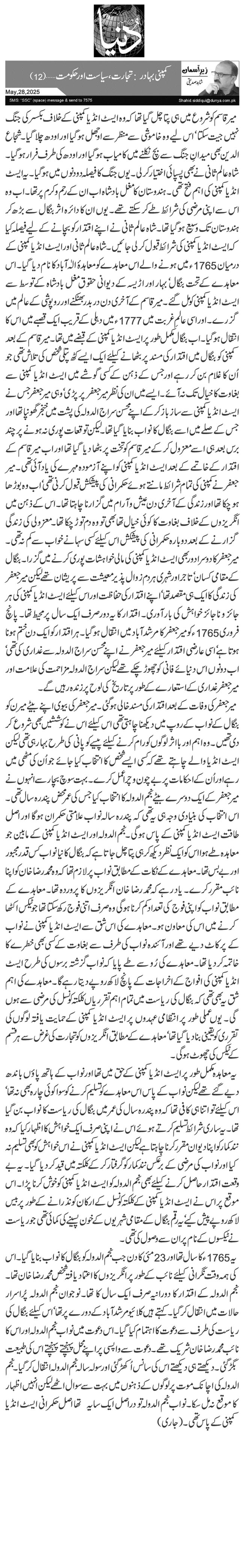 یہ 1765ء کا سال تھا اور 23مئی کا دن جب نجم الدولہ کو بنگال کا نواب بنایا گیا۔ اس کی ہمہ وقت نگرانی کیلئے نائب کے طور پر انگریزوں کا اعتماد یافتہ شخص محمد رضا خان تھا۔ نجم الدولہ کے اقتدار کا دورانیہ صرف ایک سال کا تھا۔ نوجوان نجم الدولہ پُراسرار حالات میں انتقال کر گیا۔ کہتے ہیں کلائیو مرشدآباد کے دورے پر تھا‘ اس کیلئے بنگال کی ریاست کی طرف سے دعوت کا اہتمام کیا گیا۔ اس دعوت میں نواب نجم الدولہ اور اس کا نائب محمد رضا خان شریک تھے۔ دعوت سے واپسی پر اپنے محل پہنچتے پہنچتے اس کی طبیعت بگڑ گئی۔ دیکھتے ہی دیکھتے اس کی سانس اُکھڑ گئی اور سولہ سالہ نجم الدولہ انتقال کر گیا۔ نجم الدولہ کی اچانک موت پر لوگوں کے ذہنوں میں بہت سے سوال اٹھے لیکن انہیں اظہار کا موقع نہ مل سکا۔ نواب نجم الدولہ تو دراصل ایک سایہ تھا اصل حکمرانی ایسٹ انڈیا کمپنی کے پاس تھی۔ (جاری)